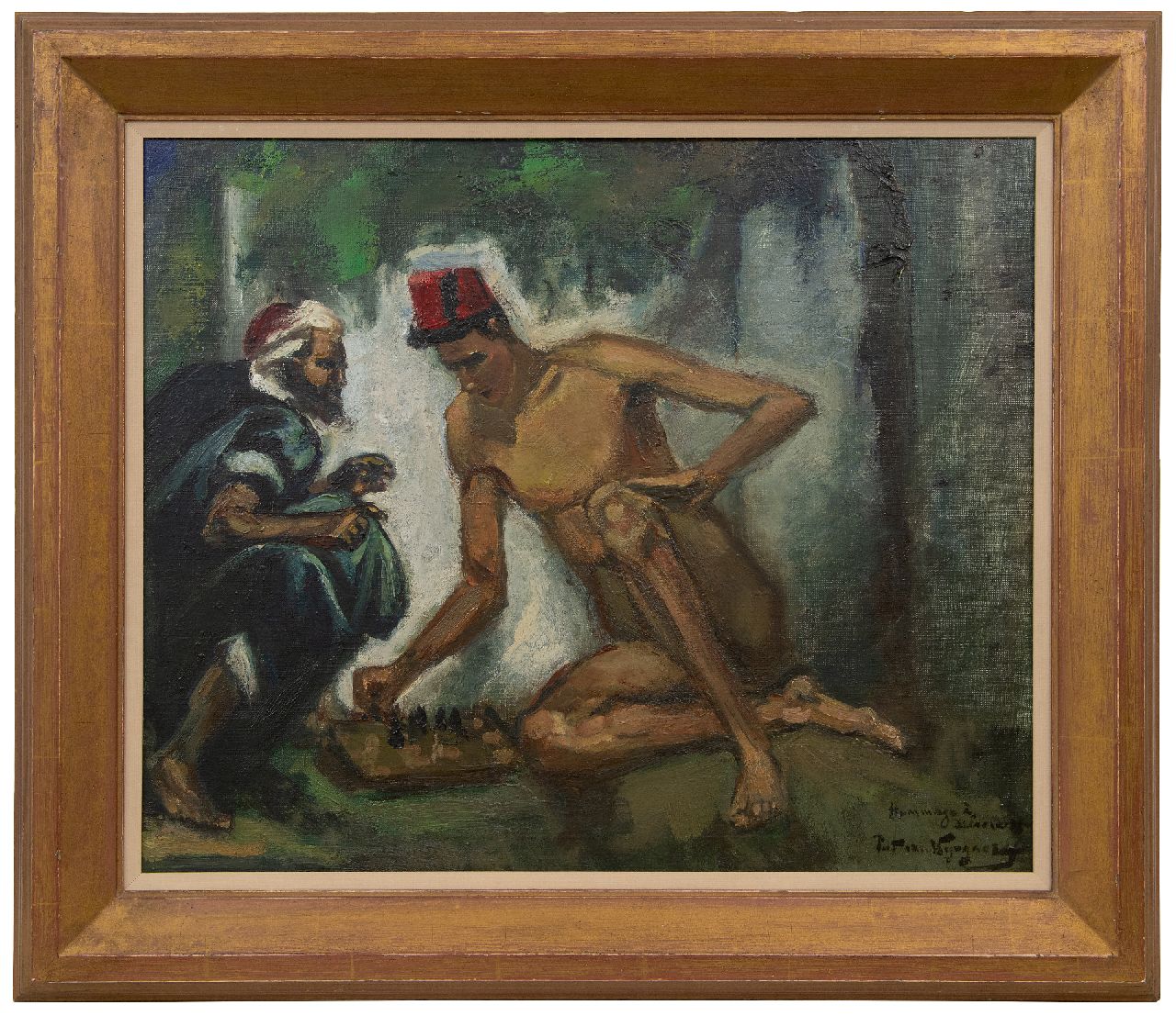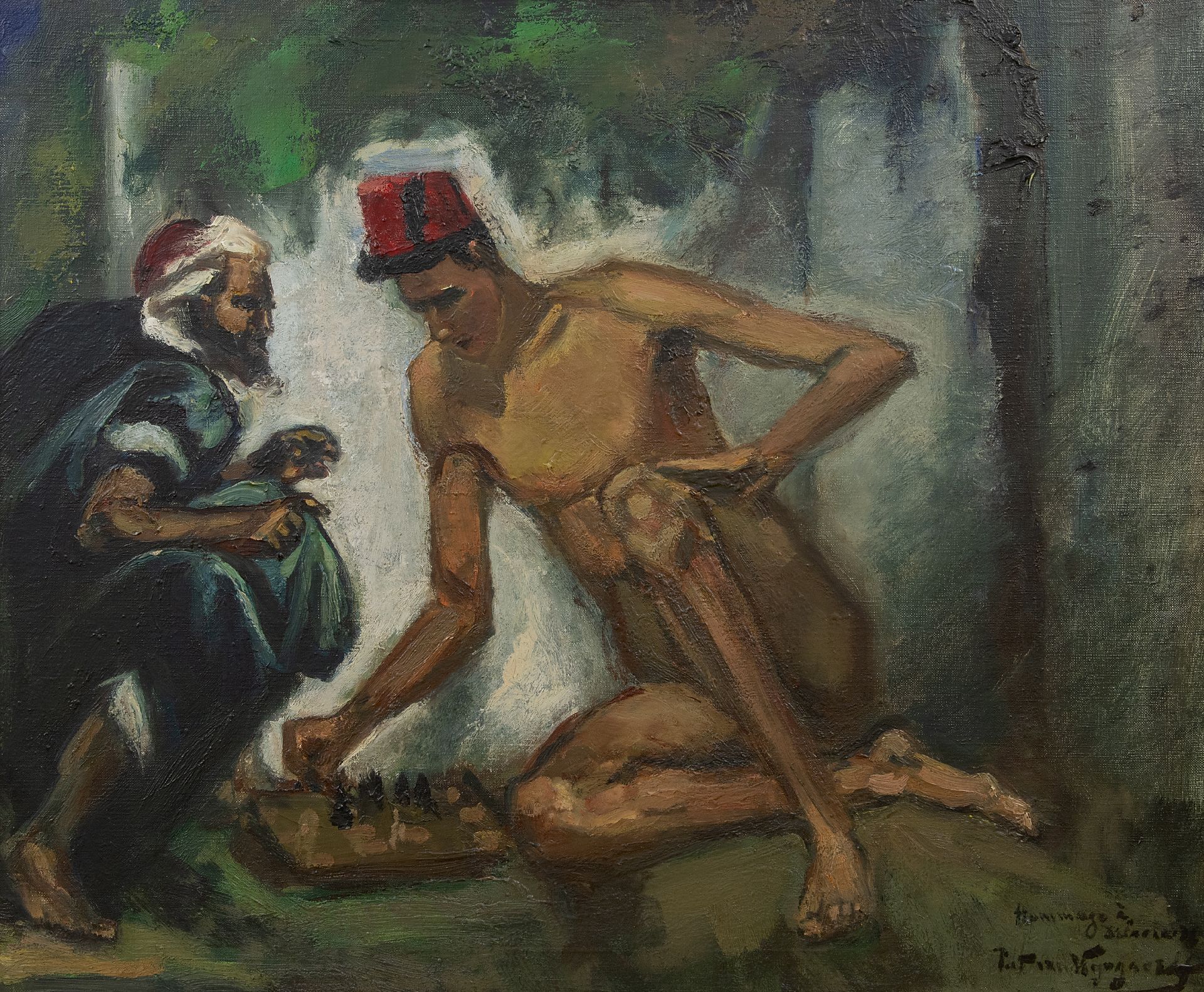 Piet van Wijngaerdt kunstwerk • schilderij • te koop Hommage à Delacroix een schaakpartij