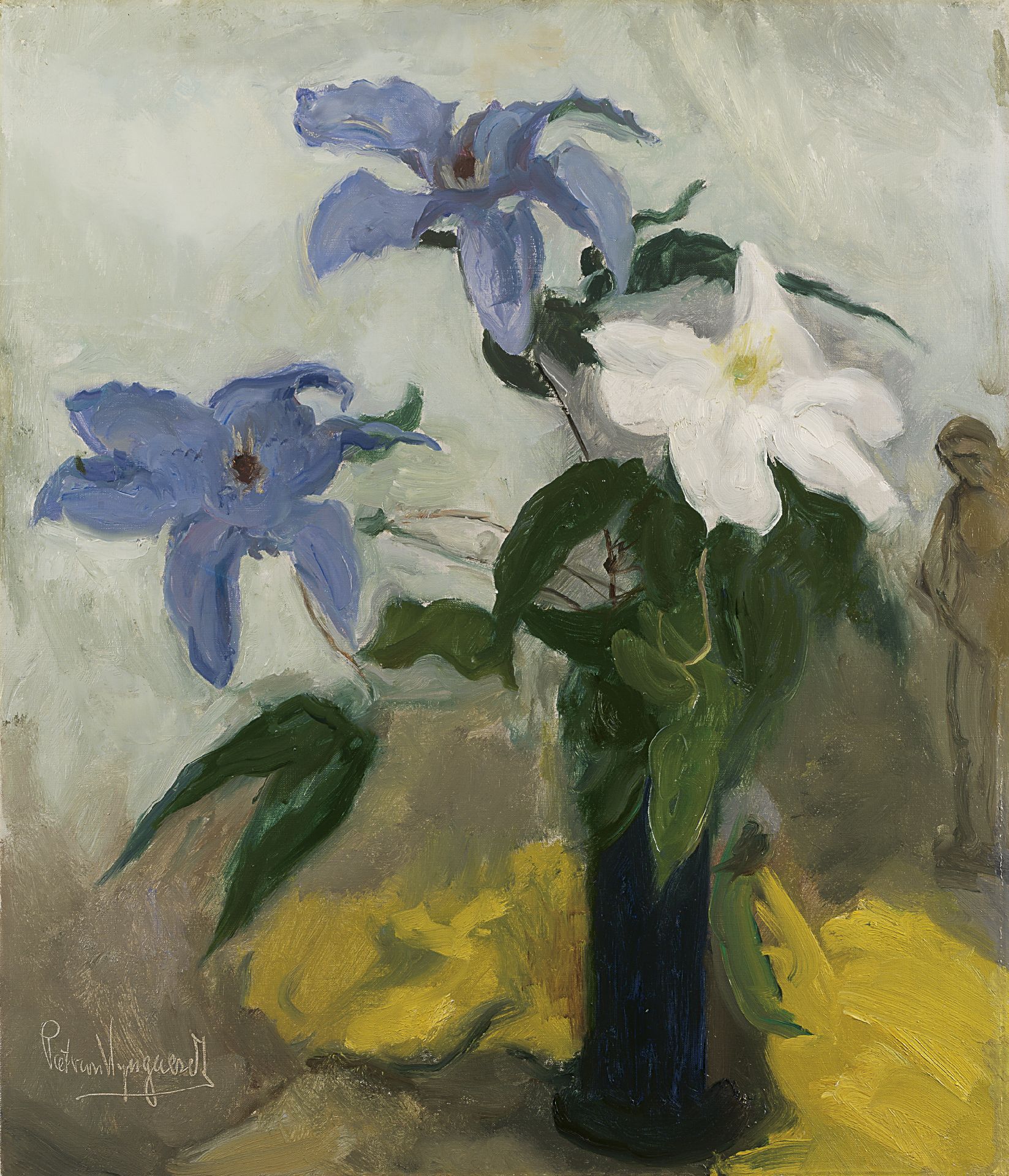 Piet van Wijngaerdt kunstwerk • schilderij • voorheen te koop Paarse en witte clematis