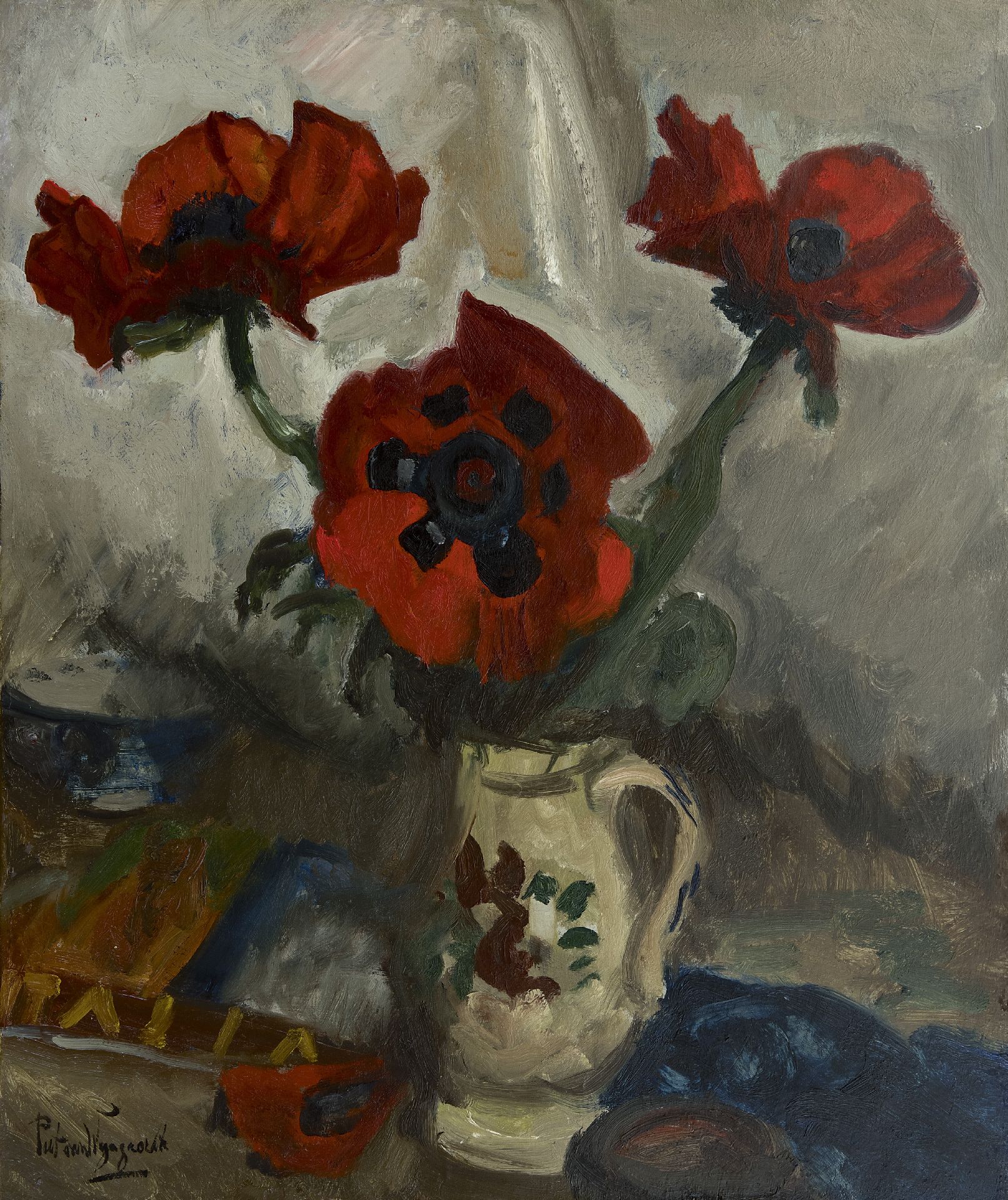 Piet van Wijngaerdt kunstwerk • schilderij • voorheen te koop Papavers in gebloemde kan