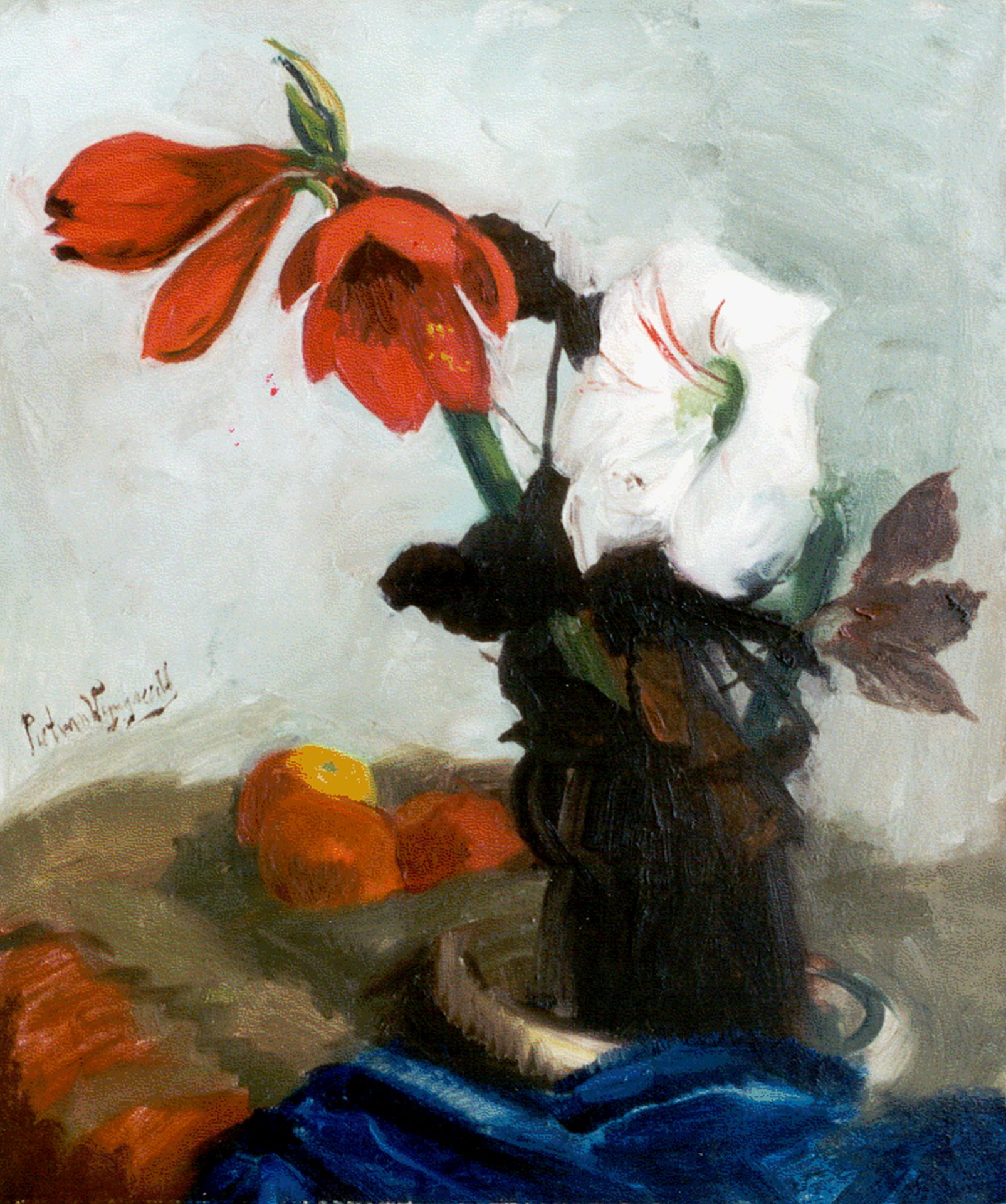 annotatie verso: 'Rode en witte amaryllis. Piet van Wijngaerdt'