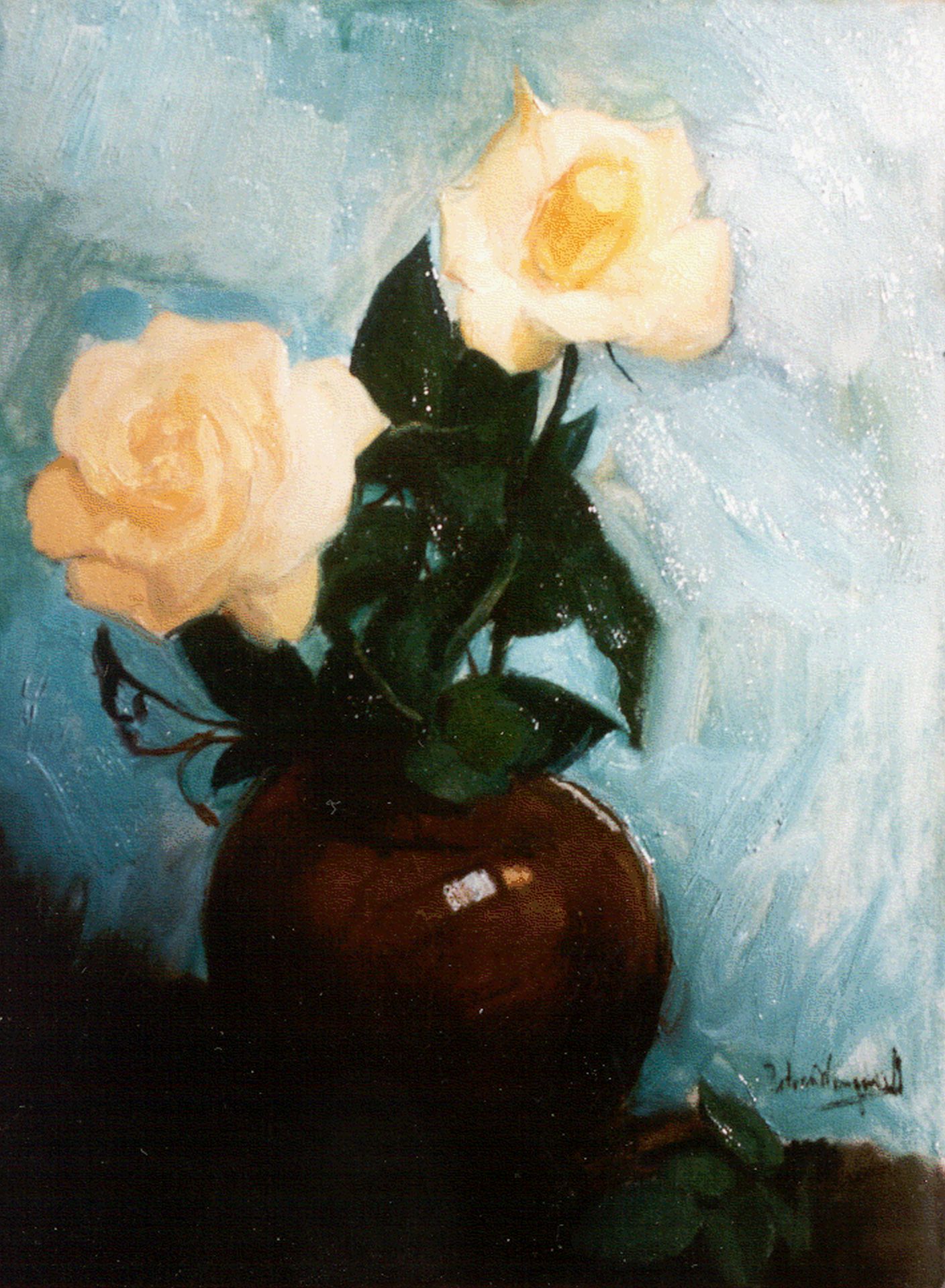 Piet van Wijngaerdt kunstwerk • schilderij • voorheen te koop Stilleven van gele rozen