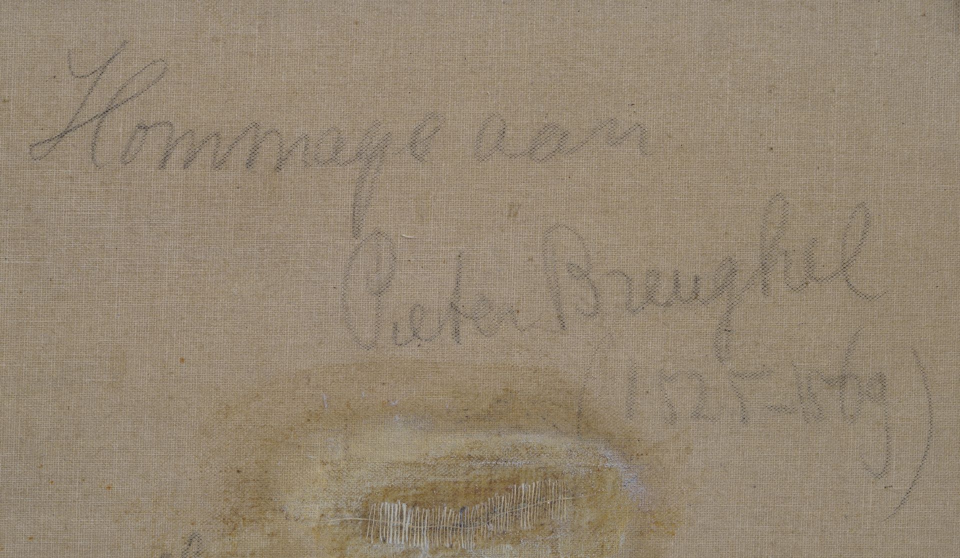 annotatie verso: 'Hommage aan Pieter Breughel (1525-1569), Winter in Abcoude Febr. 1942' en '(Gonkel)'