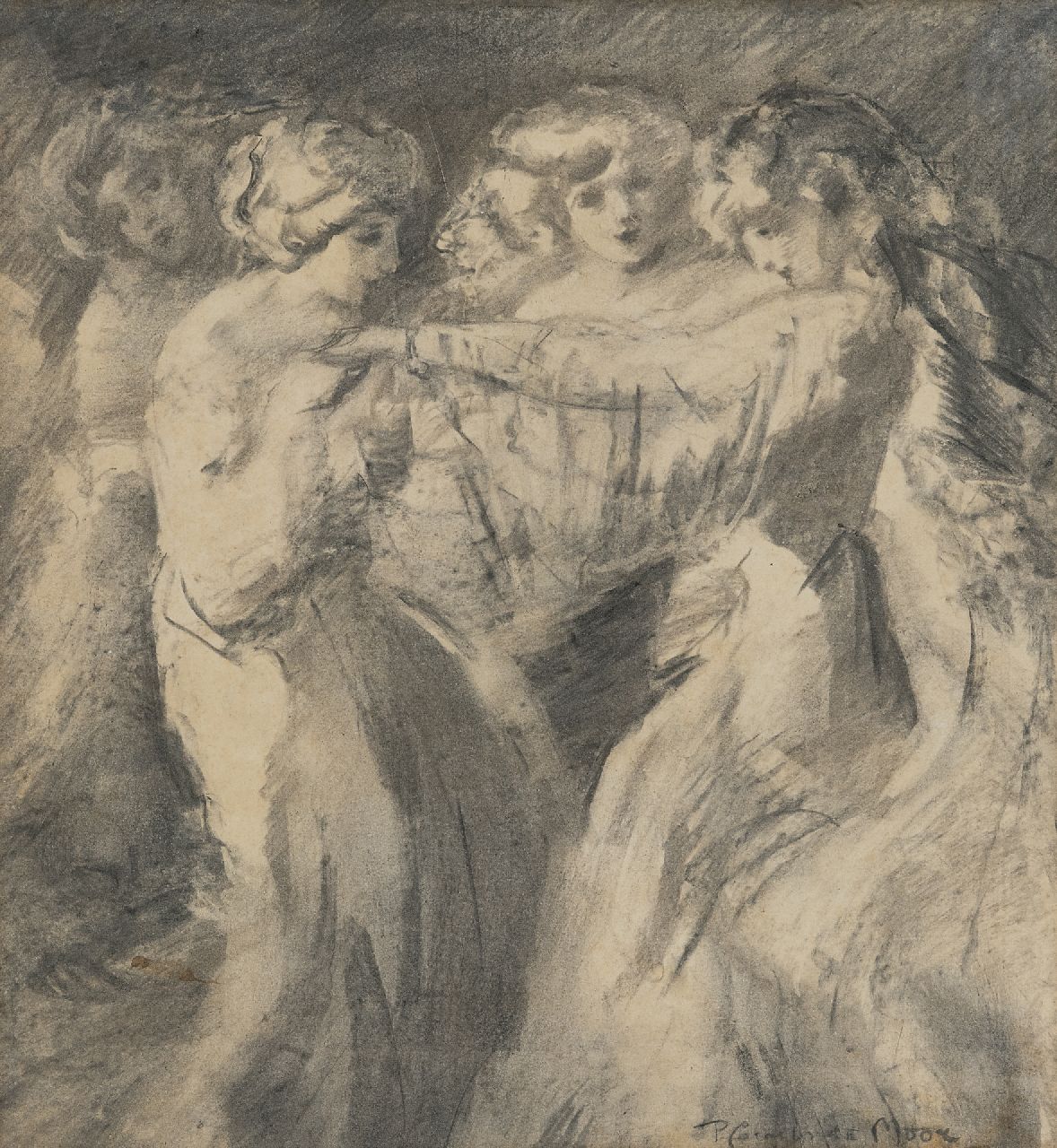 Pieter Cornelis de Moor kunstwerk • aquarel • tekening • te koop Danseressen