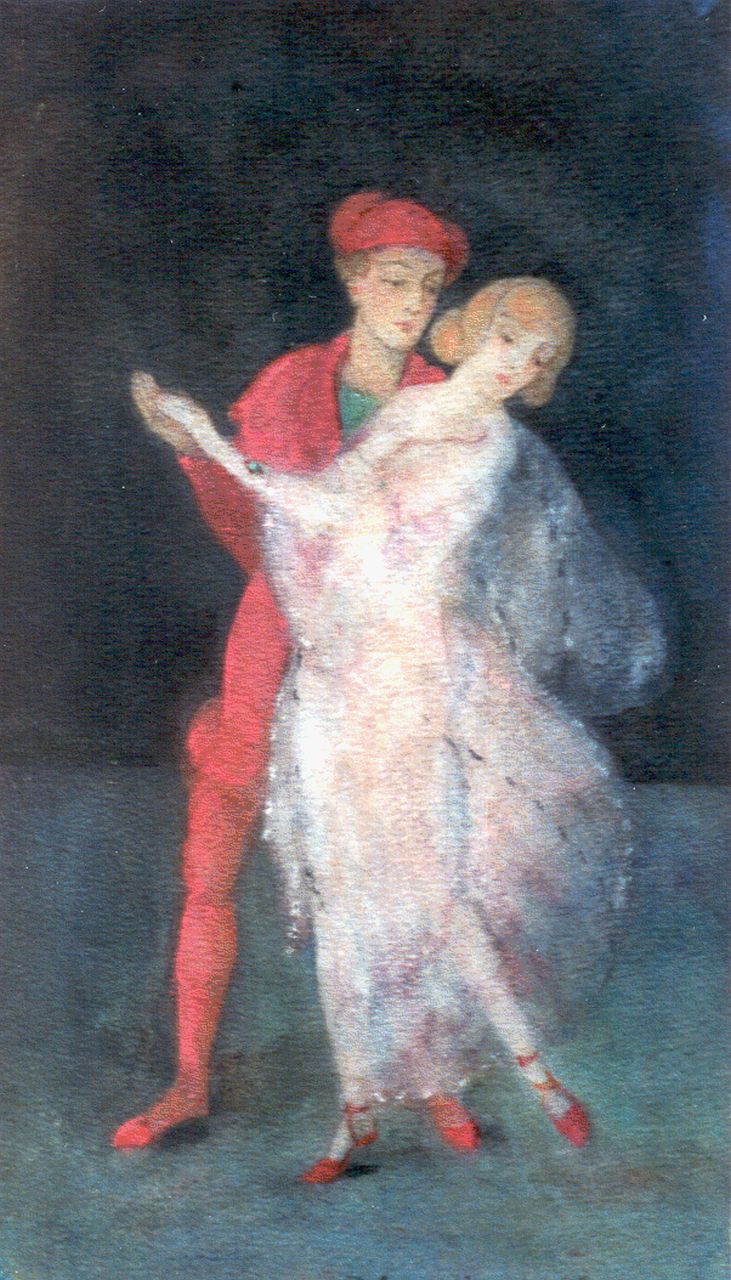 Pieter Cornelis de Moor kunstwerk • aquarel • tekening • voorheen te koop Danspaar