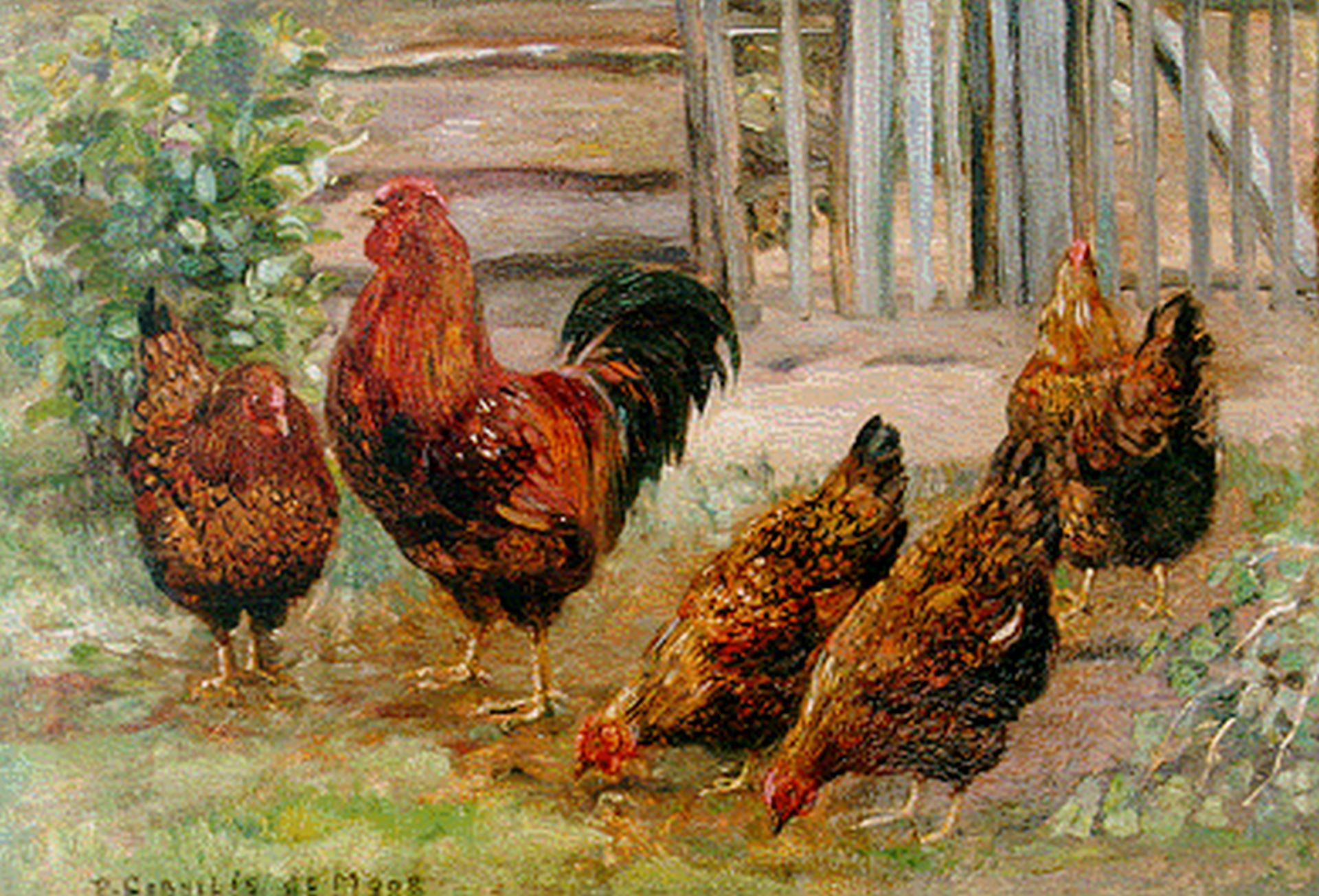Pieter Cornelis de Moor kunstwerk • schilderij • voorheen te koop Pluimvee op een erf