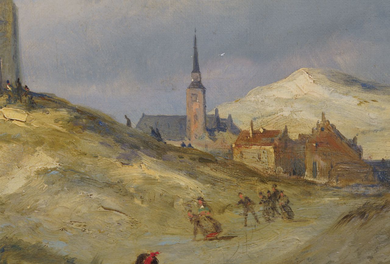 Pieter Cornelis Dommershuijzen was gespecialiseerd in het schilderen van zee- en riviergezichten, havengezichten, schipbreuken en strandgezichten. Bron van inspiratie waren de marines van Hermanus Koekkoek. In 1861 trok hij vermoedelijk naar Engeland, waar hij voor de Engelse markt typisch Hollandse zeegezichten schilderde. Het schip dat op dit schilderij vergaat voor de kust van Zandvoort was de Engelse bark P. Nicolas alias De Olieman. De bark, met John Whitney als kapitein, was met petroleum geladen en strandde op 1 januari 1880 ten zuiden van Zandvoort. De restanten van het schip liggen ter hoogte van paal 70. Het Zandvoorts museum bezit enkele foto’s en aquarellen van het wrak.