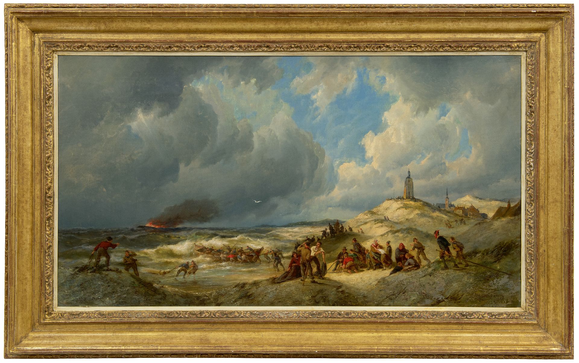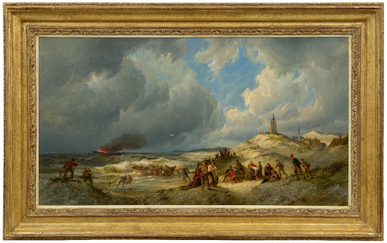 Pieter Cornelis Dommershuijzen kunstwerk • schilderij • voorheen te koop Schipbreuk van de Engelse bark P. Nicolas - alias De Olieman - voor de kust bij Zandvoort