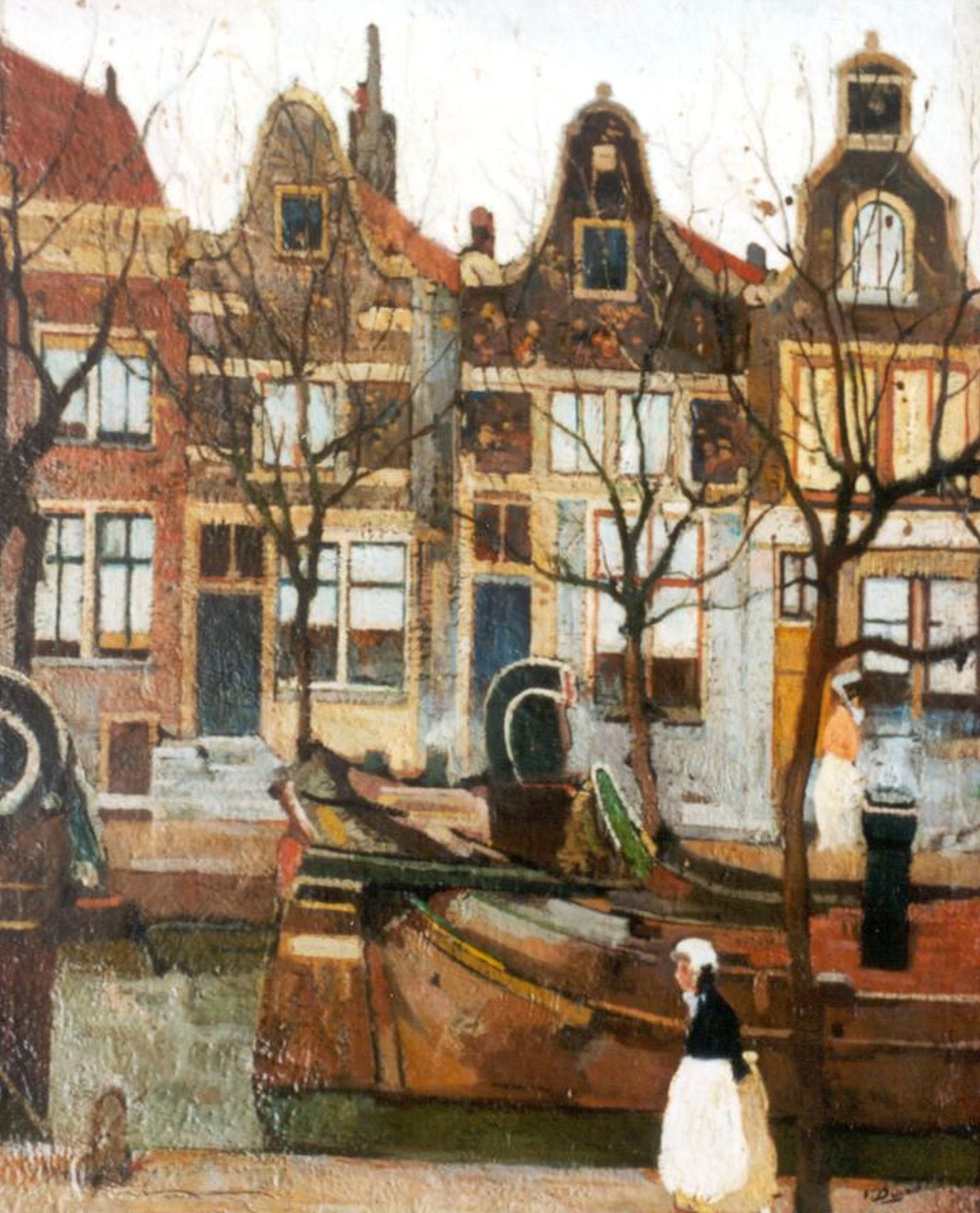 Pieter Dupont kunstwerk • schilderij • voorheen te koop Huizen aan de gracht in Amsterdam