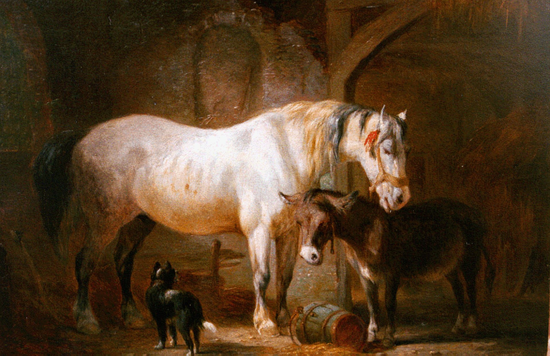 Pieter Frederik van Os kunstwerk • schilderij • voorheen te koop Stalinterieur met paard en ezel