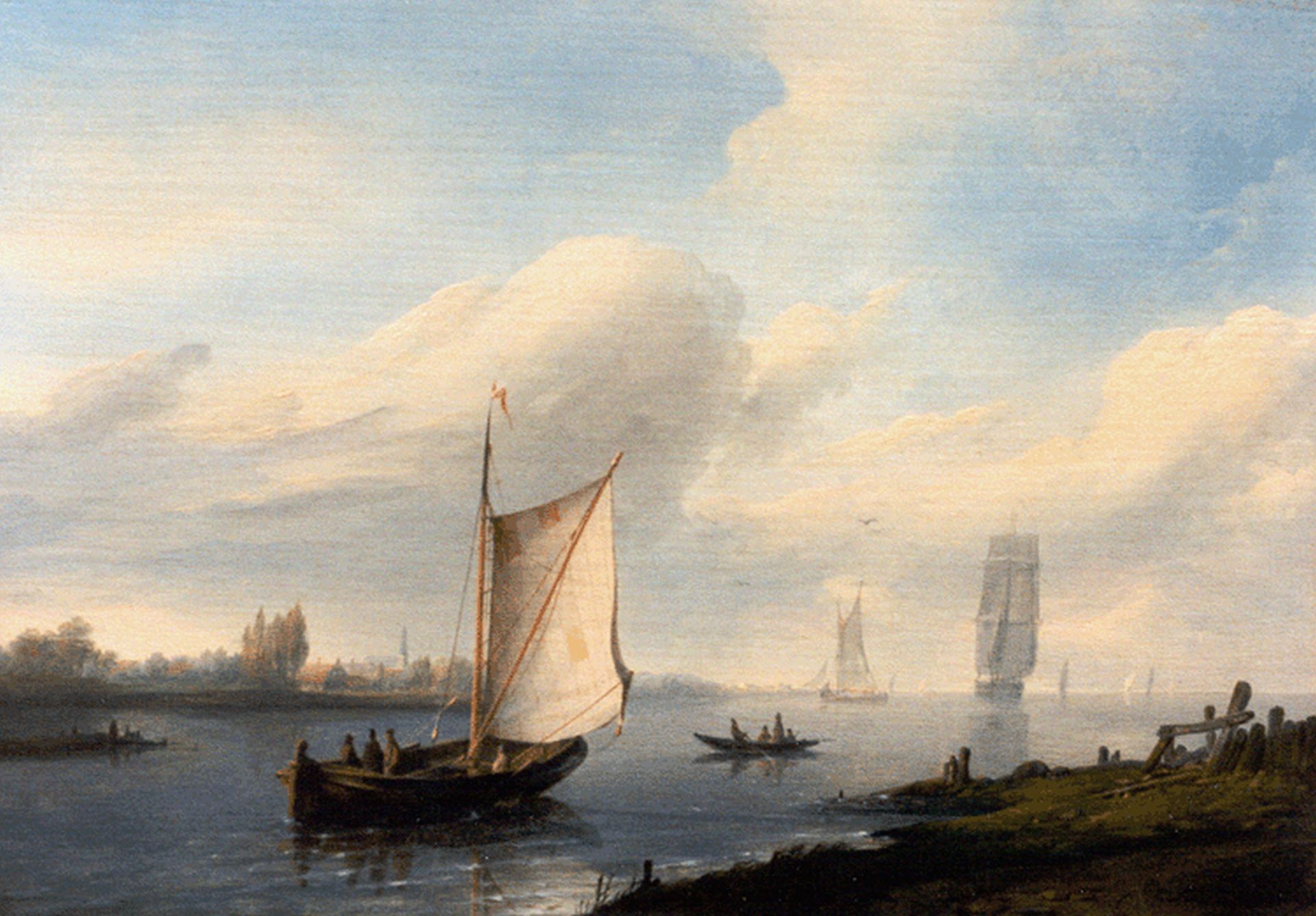 Pieter Hendrik Thomas kunstwerk • schilderij • voorheen te koop Schepen op een kalme rivier