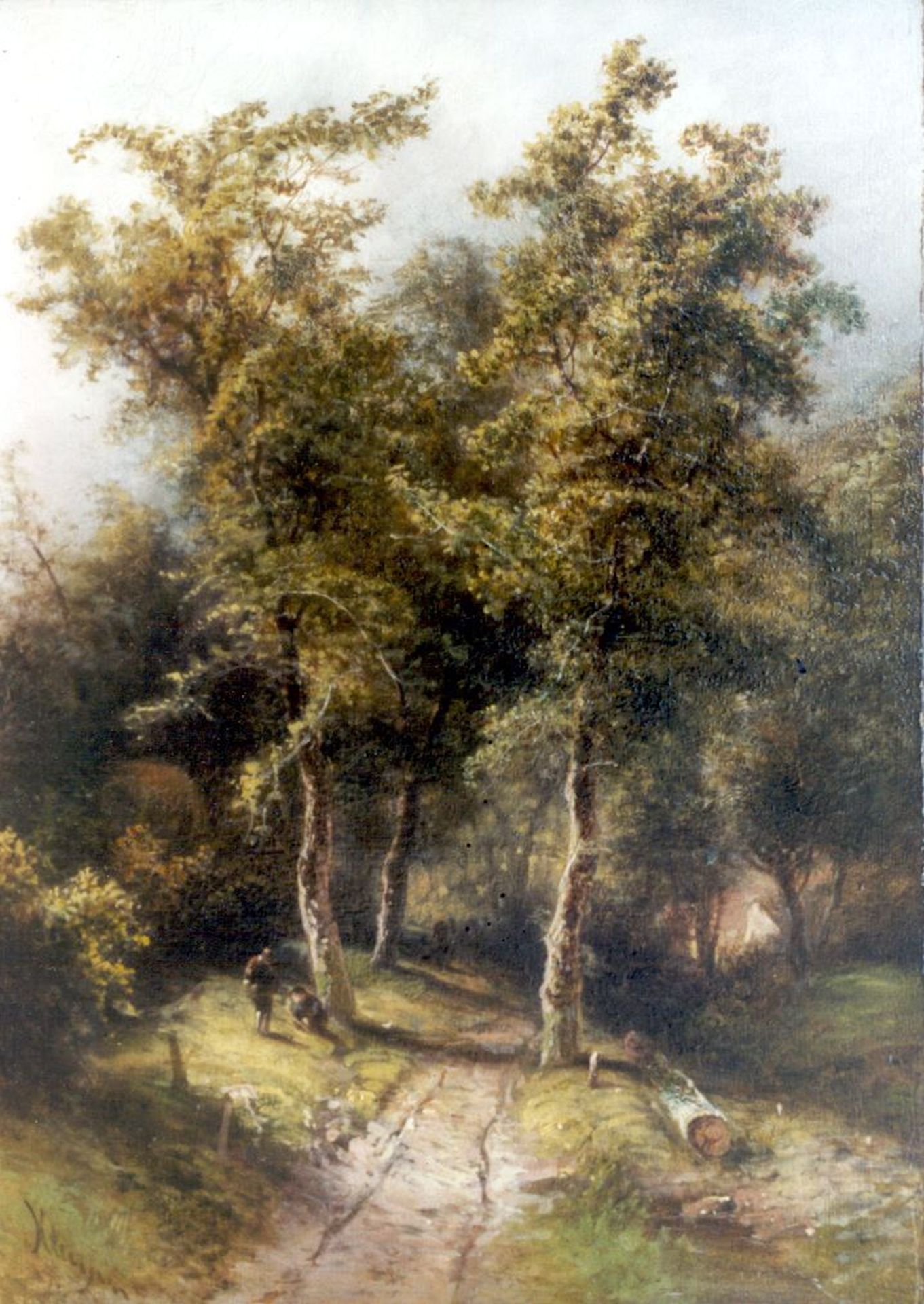 Pieter Kluyver kunstwerk • schilderij • voorheen te koop Figuren bij een bospad