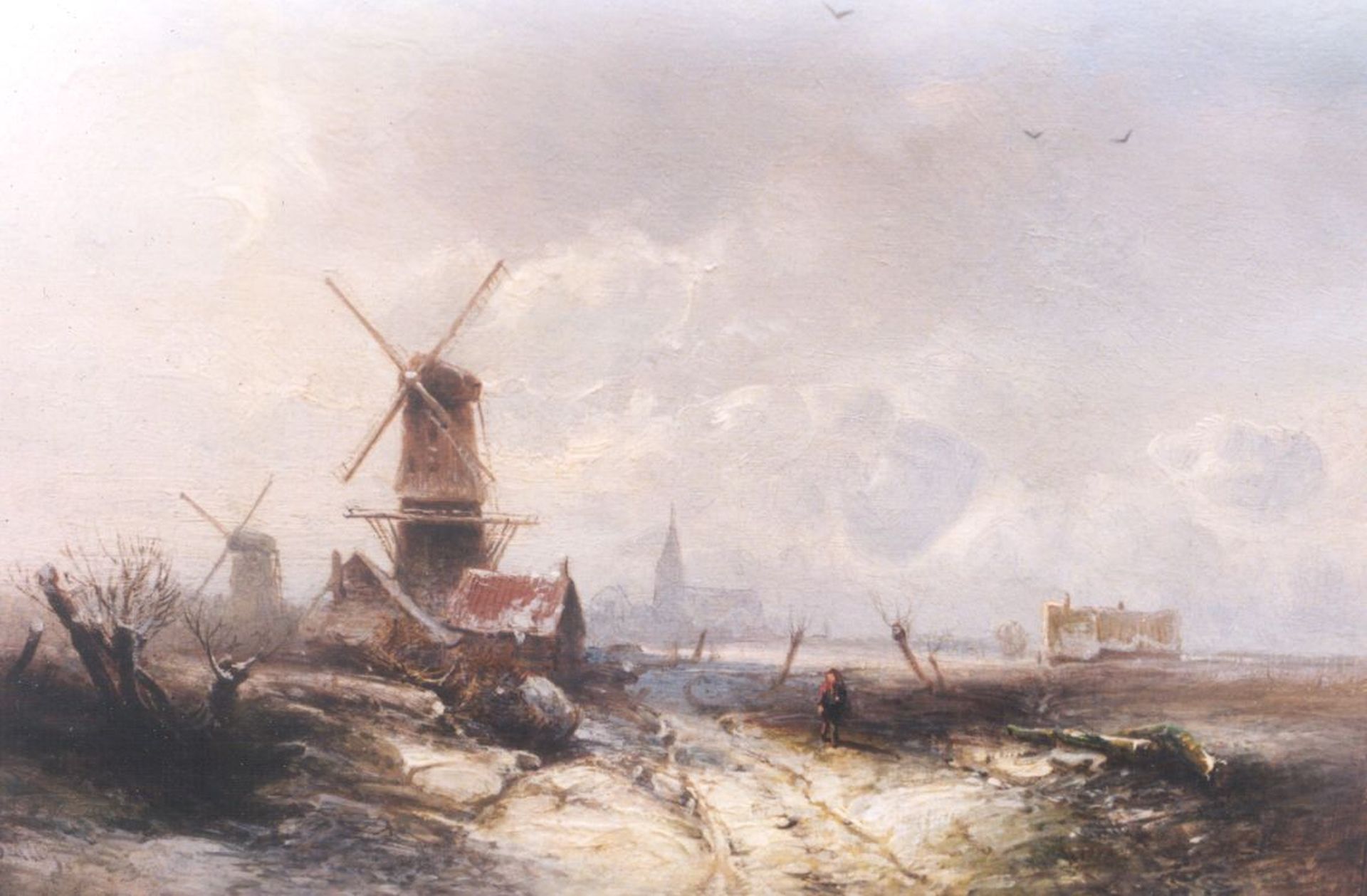 Pieter Kluyver kunstwerk • schilderij • voorheen te koop Winterlandschap met molen