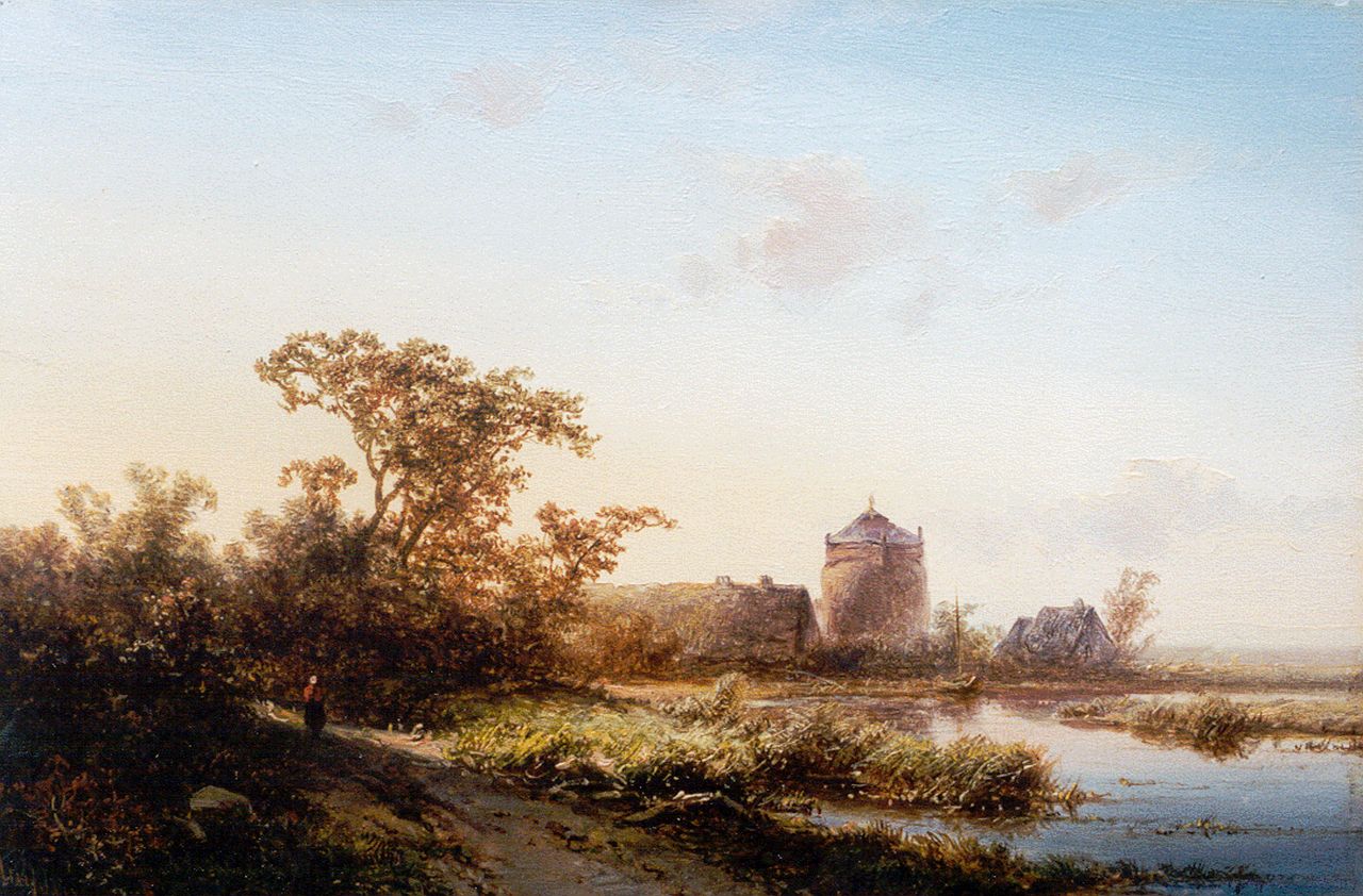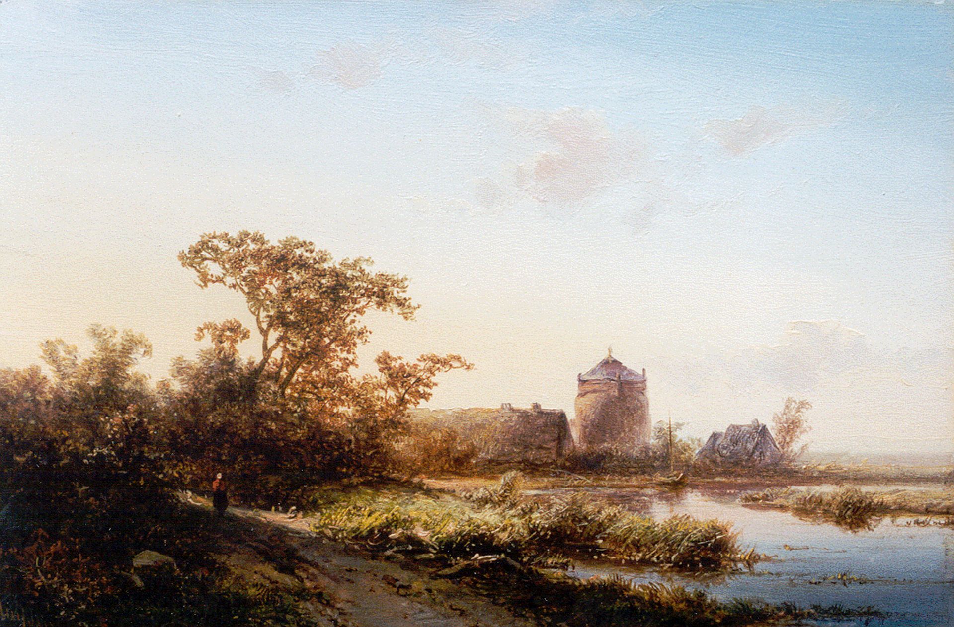 Pieter Kluyver kunstwerk • schilderij • voorheen te koop Zomers rivierlandschap bij zonsondergang