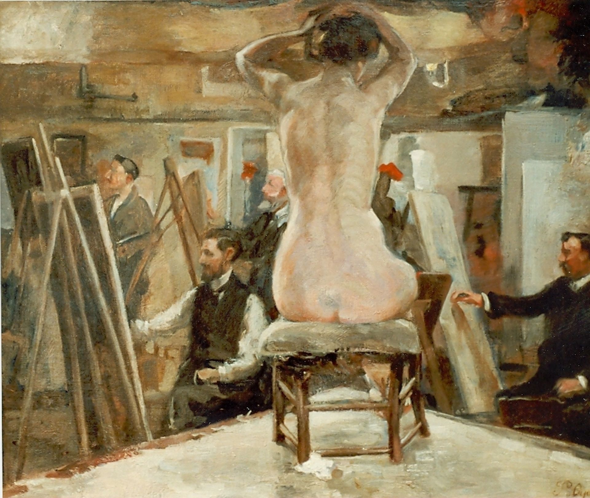 Pieter Oyens kunstwerk • schilderij • voorheen te koop Het tekenen naar model