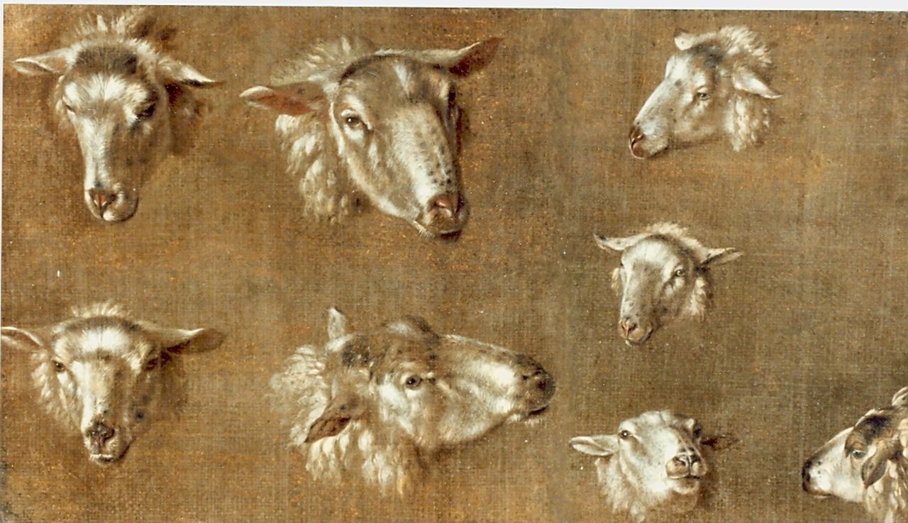 Pieter Plas kunstwerk • schilderij • voorheen te koop Studie van schapenkoppen