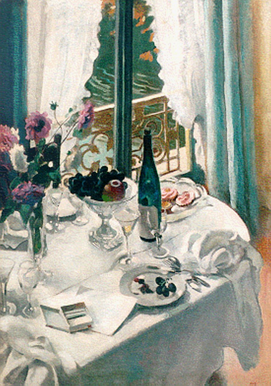 Pol Dom kunstwerk • schilderij • voorheen te koop Stilleven met gedekte tafel