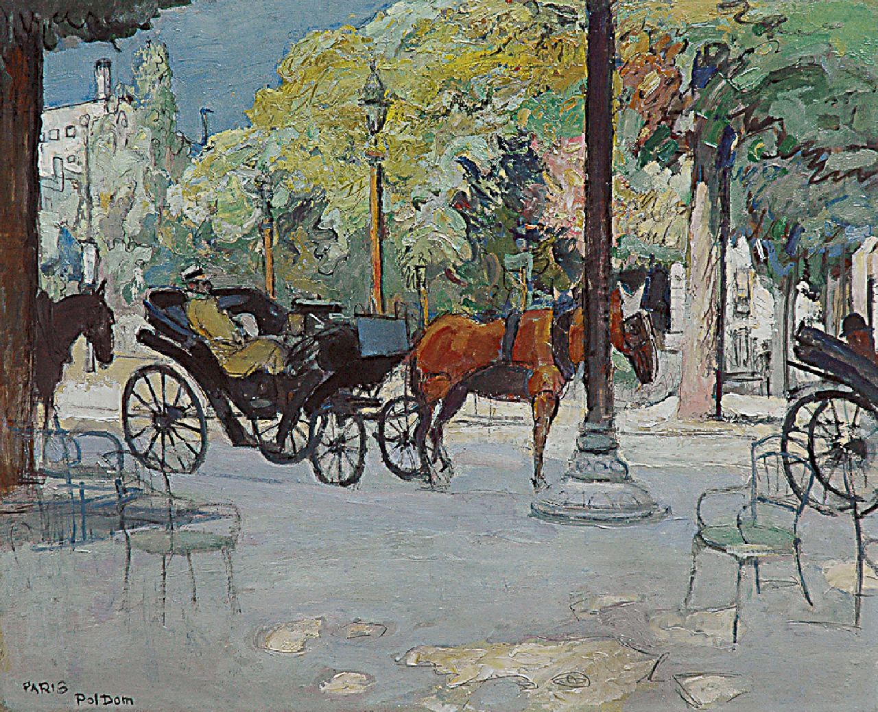 Pol Dom kunstwerk • schilderij • voorheen te koop Wachtende rijtuigen, Parijs