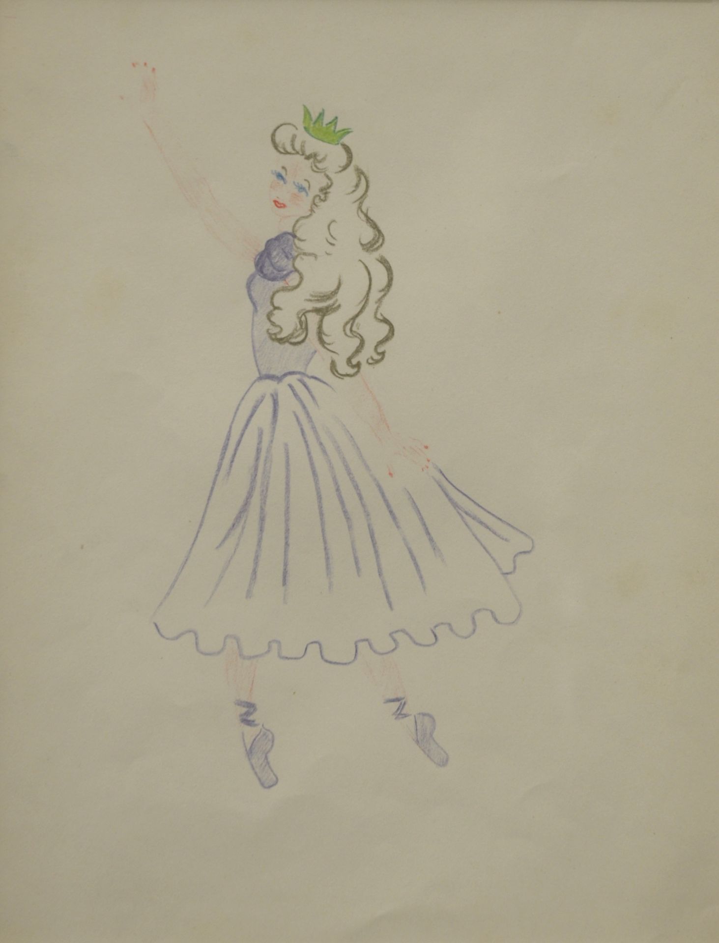 Oranje-Nassau (Prinses Beatrix) B.W.A. van | Beatrix Wilhelmina Armgard van Oranje-Nassau (Prinses Beatrix), Balletprinses, kleurpotlood op papier 30,0 x 23,0 cm
