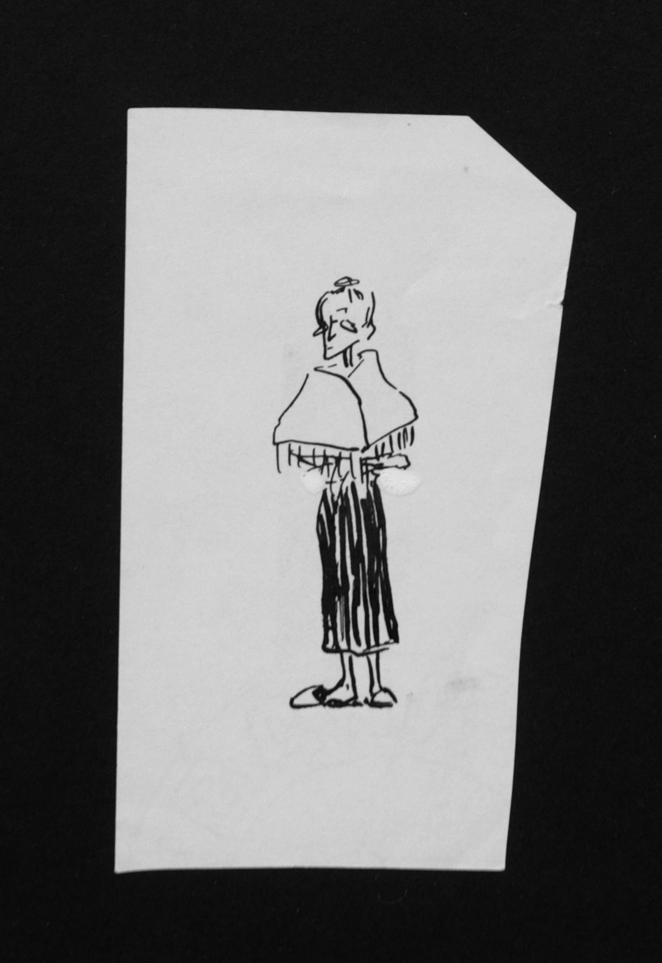 Oranje-Nassau (Prinses Beatrix) B.W.A. van | Beatrix Wilhelmina Armgard van Oranje-Nassau (Prinses Beatrix), Oude dame, potlood en Oost-Indische inkt op papier 11,0 x 6,5 cm, te dateren augustus 1960