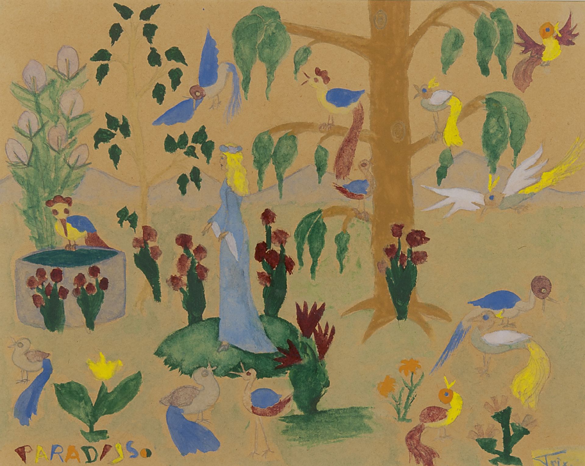 aquarel op karton 23,5 x 29,5 cm, gesigneerd rechtsonder 'Trix'