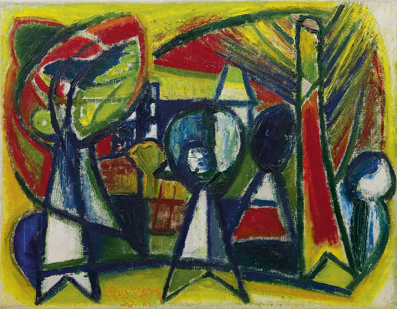 olieverf op doek 35,4 x 45,2 cm, gesigneerd links van het midden. en gedateerd '56