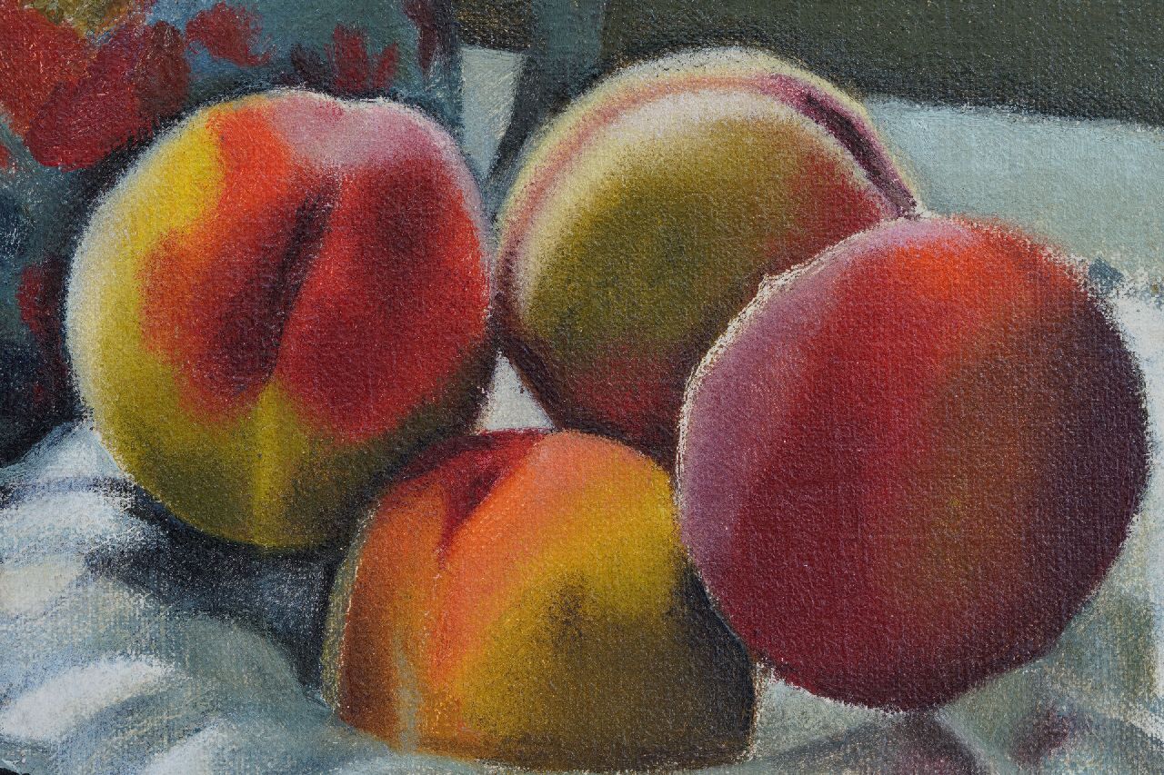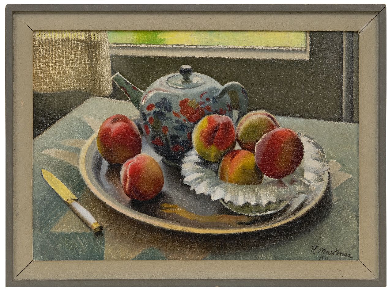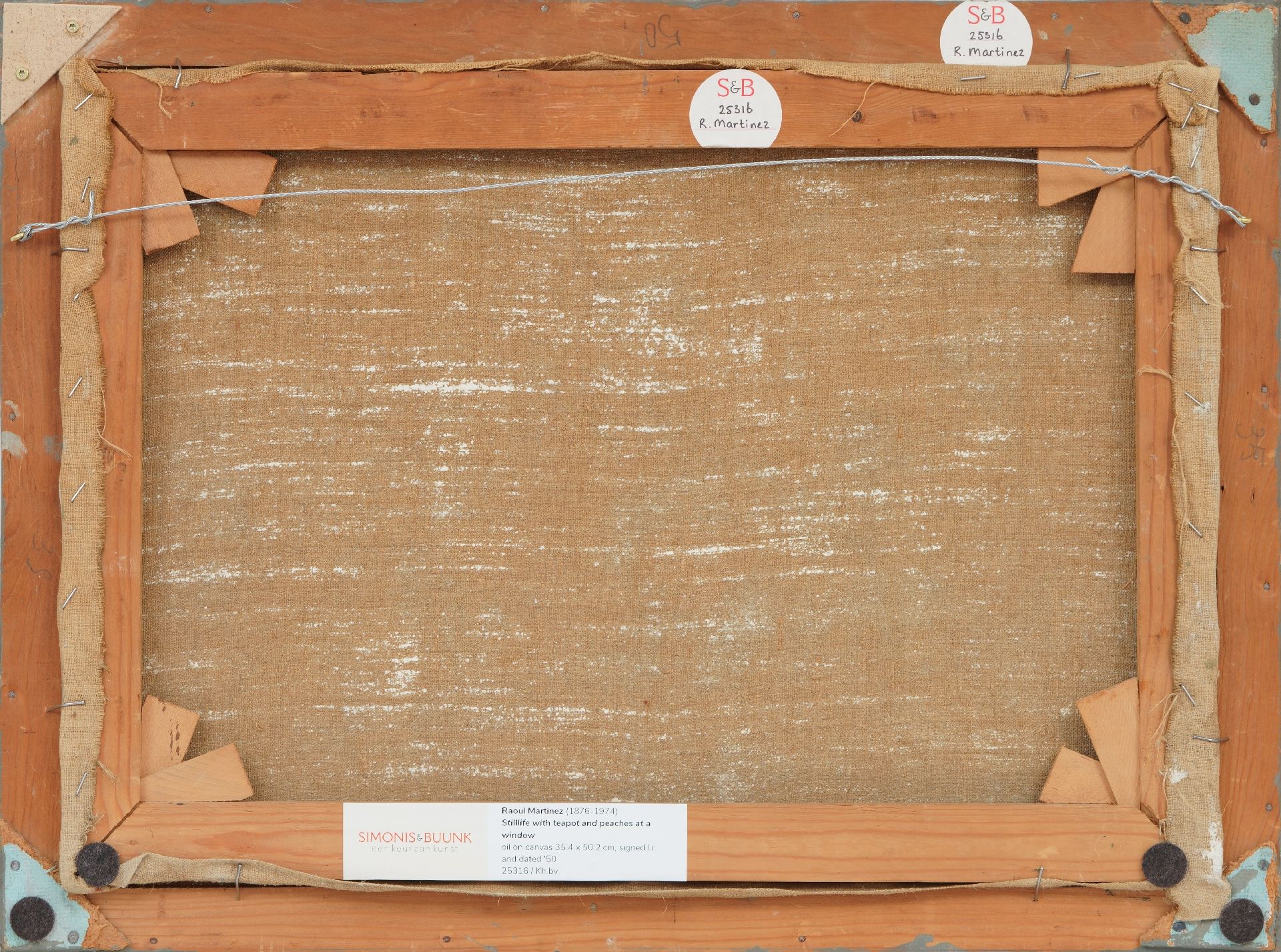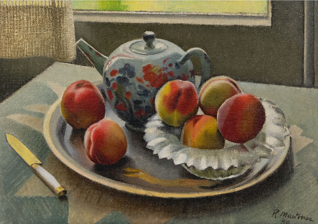 Raoul Martinez kunstwerk • schilderij • te koop Stilleven met theepot en perziken bij een raam