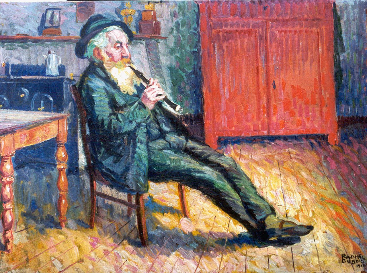 Raphael Dubois kunstwerk • schilderij • voorheen te koop De kunstenaar speelt hobo