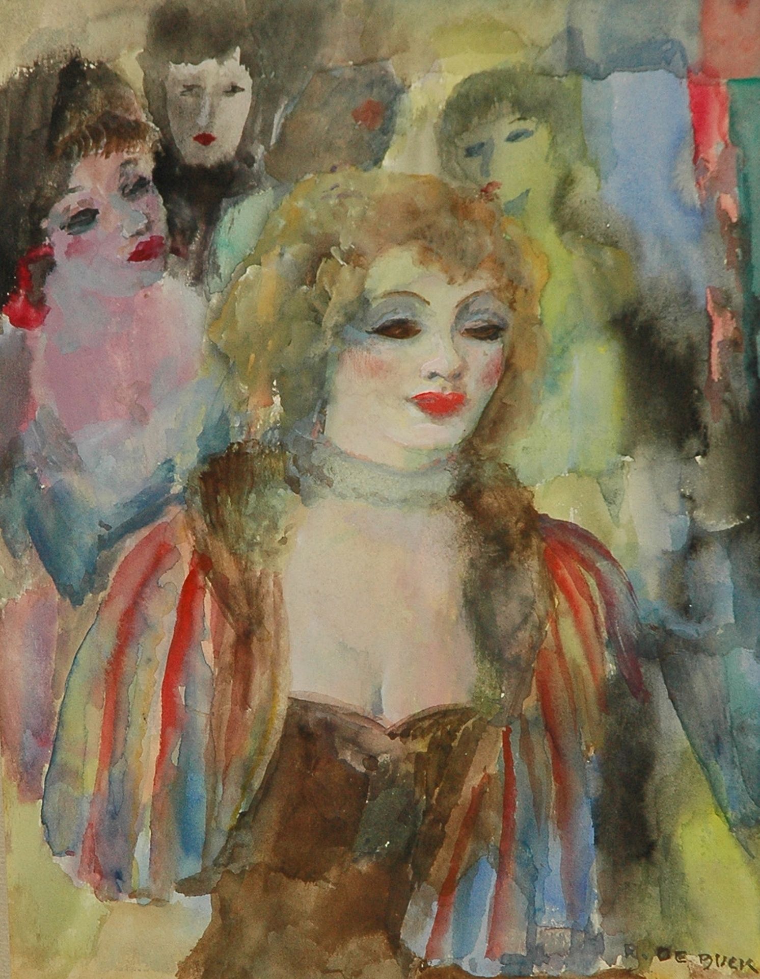 Raphaël de Buck kunstwerk • aquarel • tekening • voorheen te koop Vier vrouwen