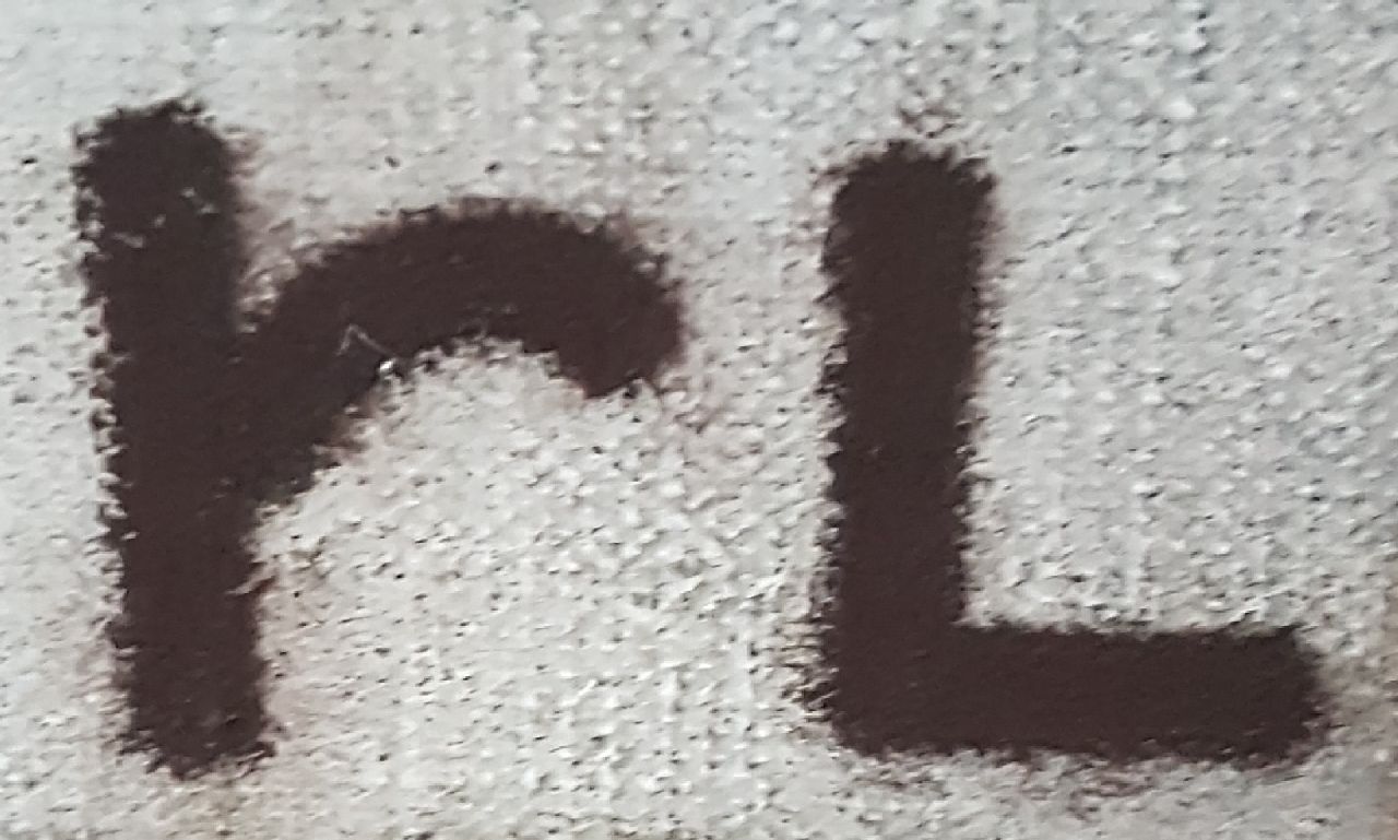 olieverf met marmerpoeder op doek 60,2 x 50,0 cm, gesigneerd rechtsonder met initialen en verso voluit en verso gedateerd 89-94