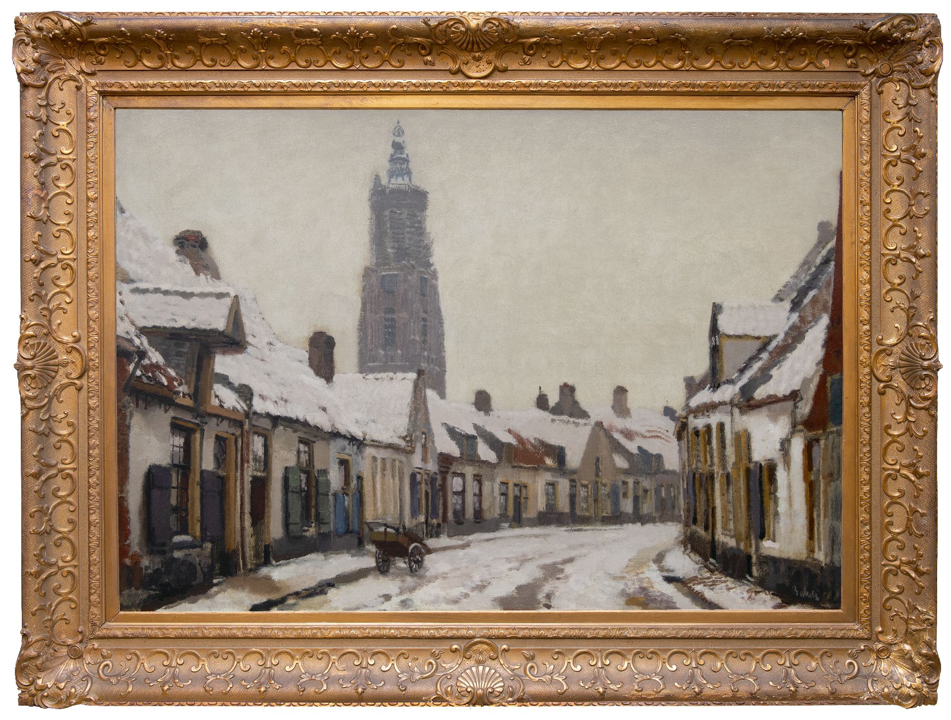 Reinier Sybrand Bakels kunstwerk • schilderij • te koop Winters gezicht in Amersfoort met de Onze Lieve Vrouwetoren