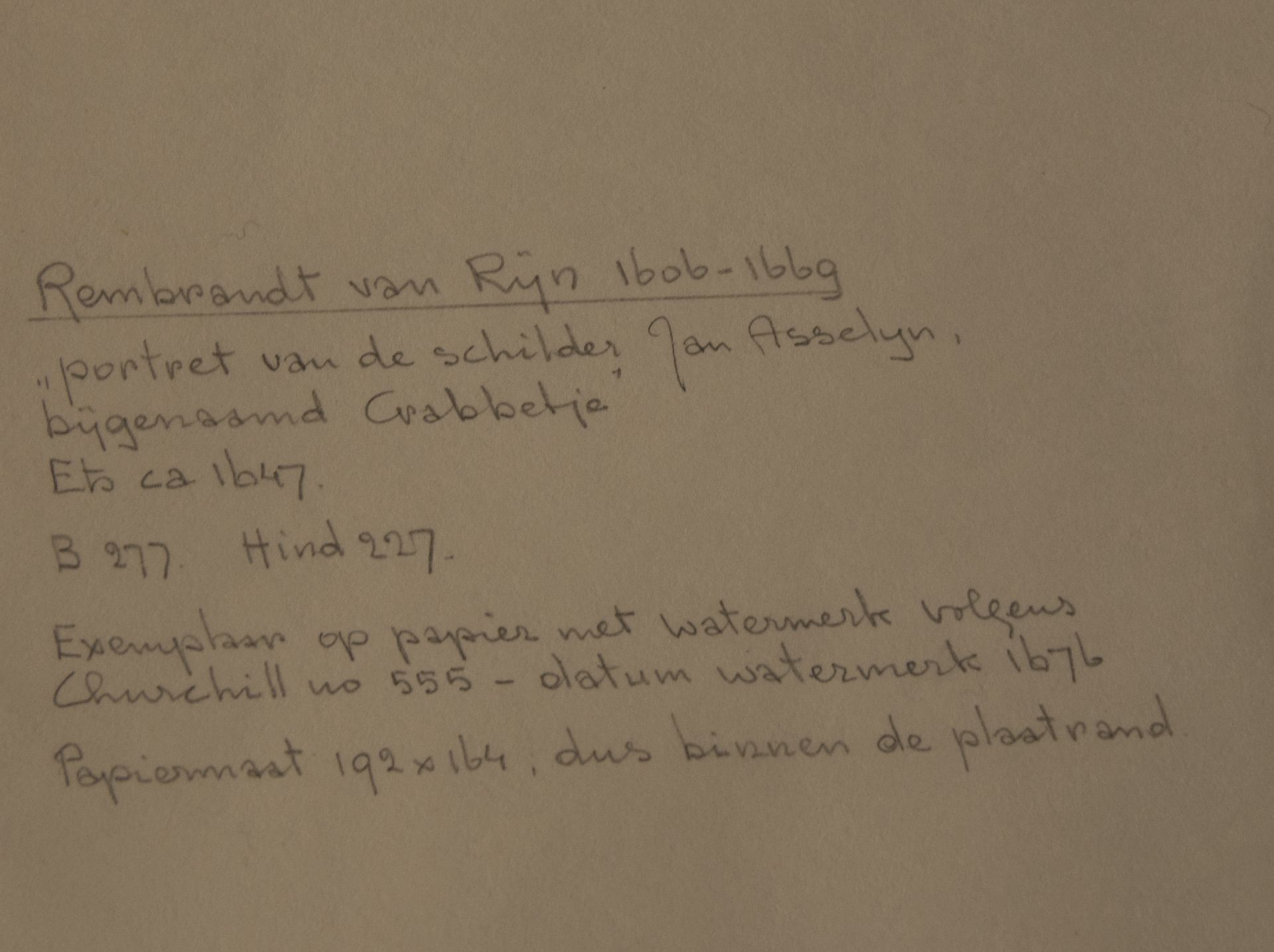 Rembrandt kunstwerk • grafiek • voorheen te koop De schilder Jan Asselijn, bijgenaamd 'Krabbetje'