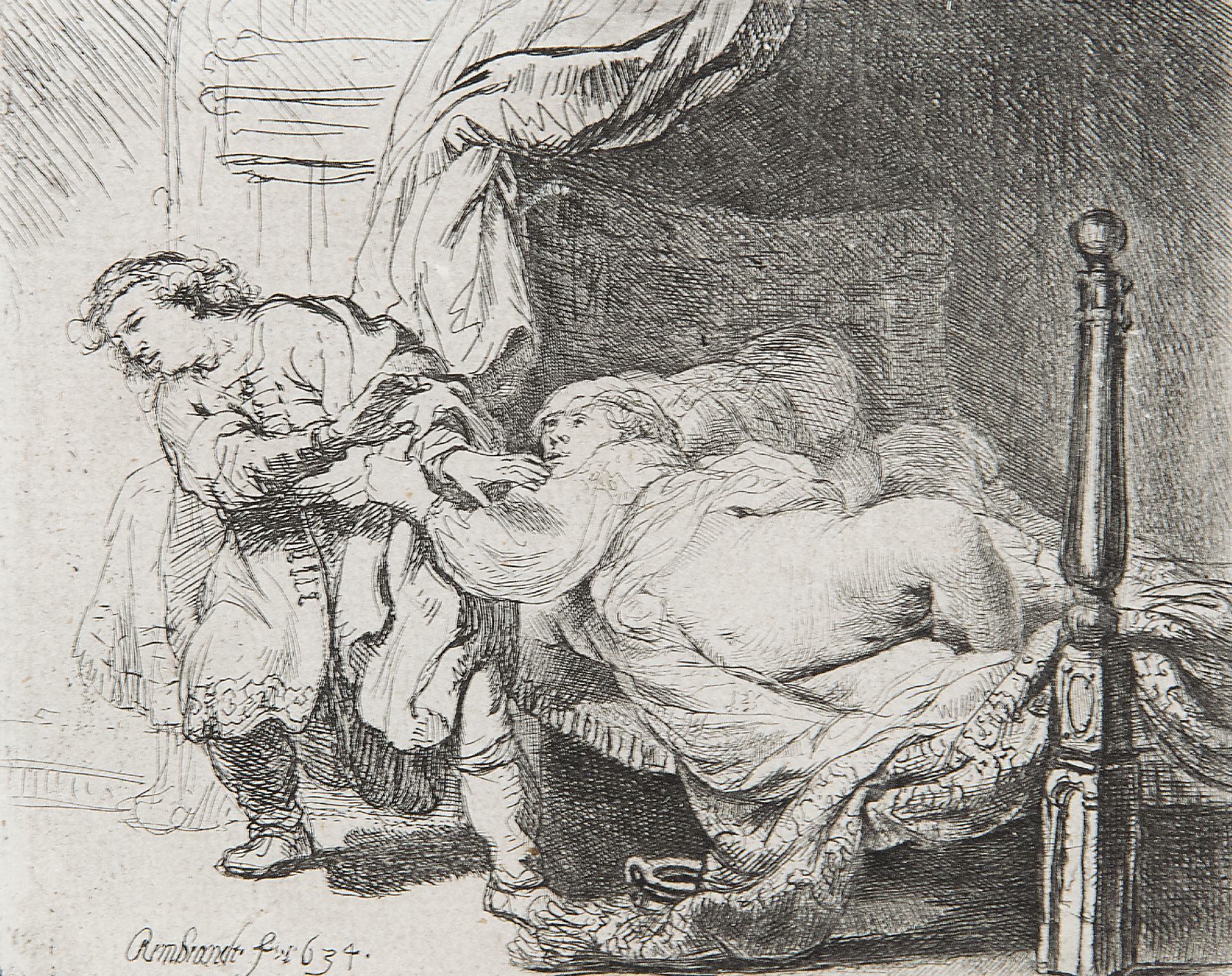 Rembrandt kunstwerk • grafiek • te koop Jozef en de vrouw van Potifar