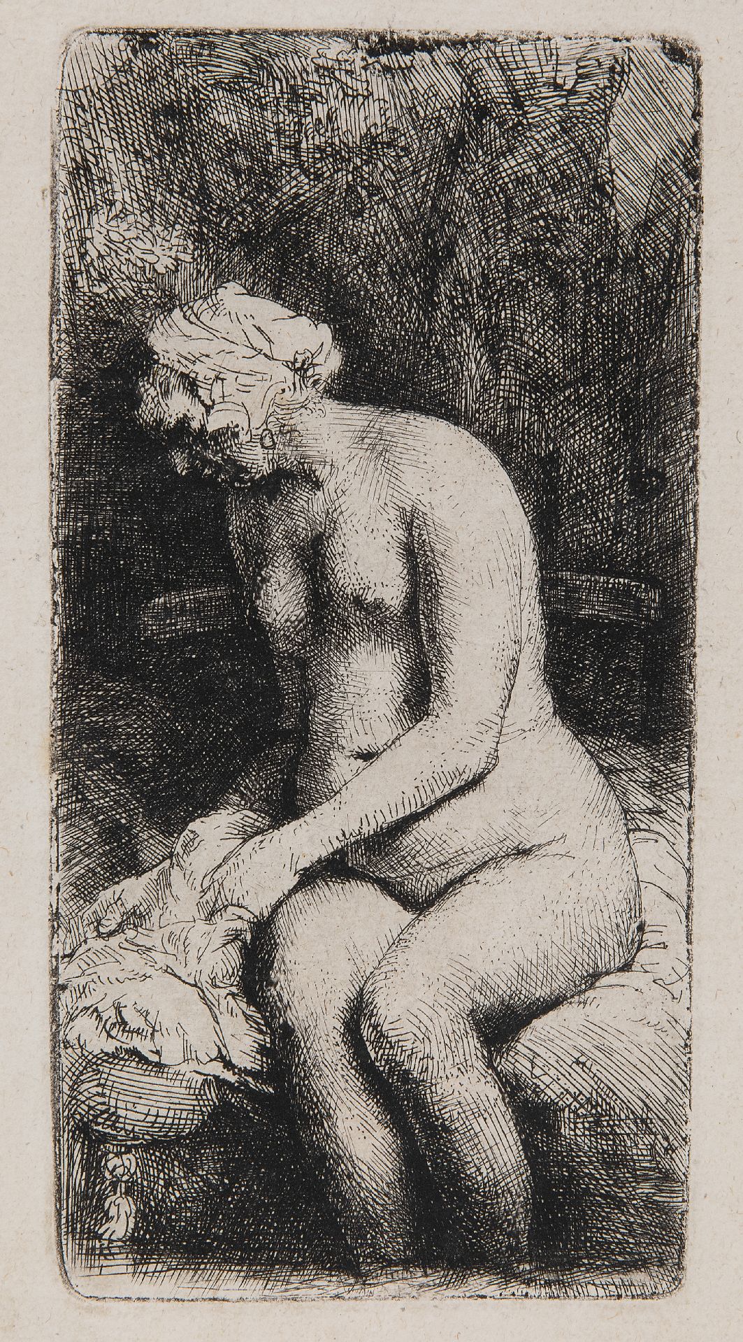 Rembrandt kunstwerk • grafiek • voorheen te koop Vrouw haar voeten badend in een beek