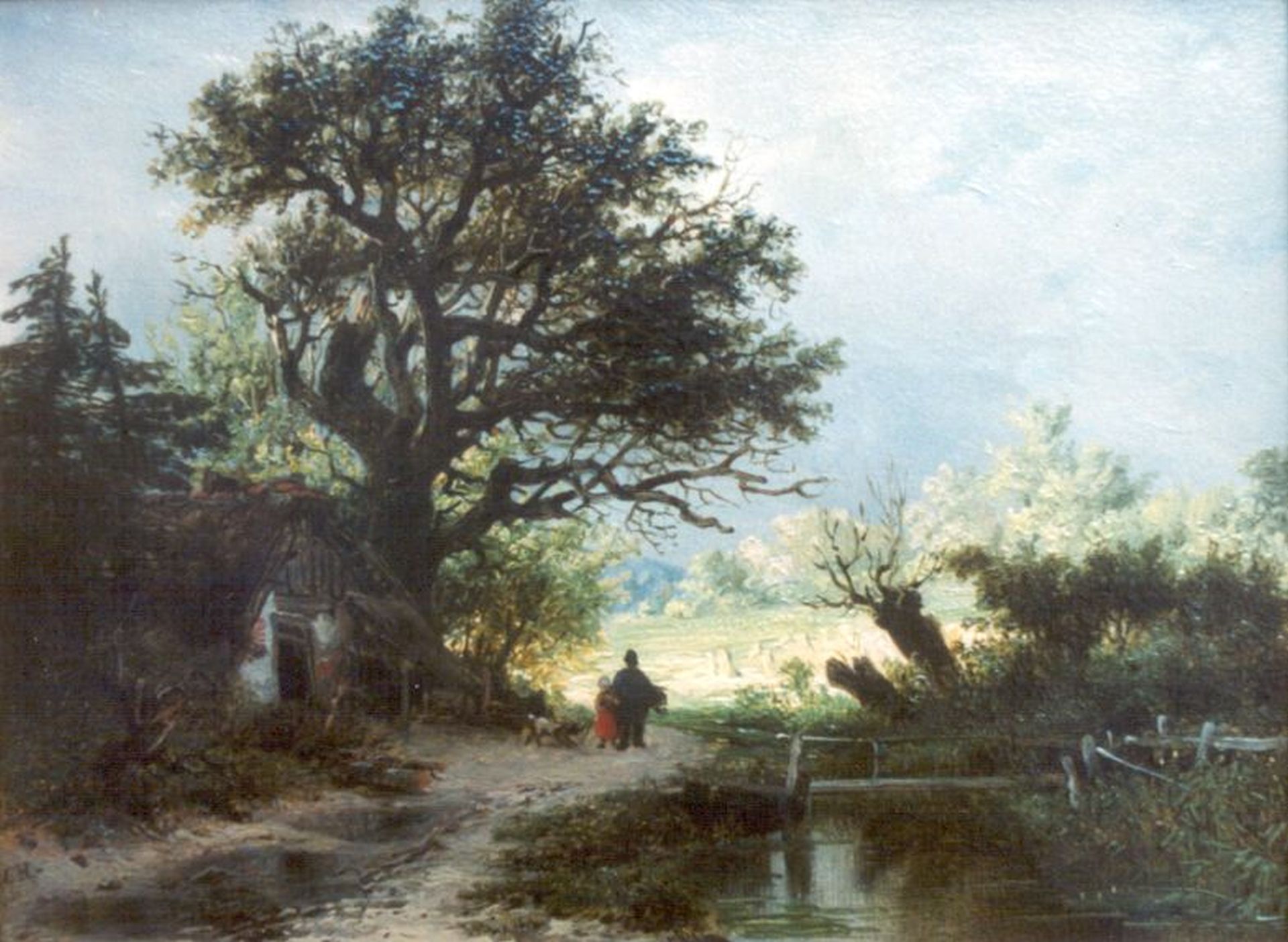 Remigius Adrianus Haanen kunstwerk • schilderij • voorheen te koop Boerderij aan een slootje met figuurtjes