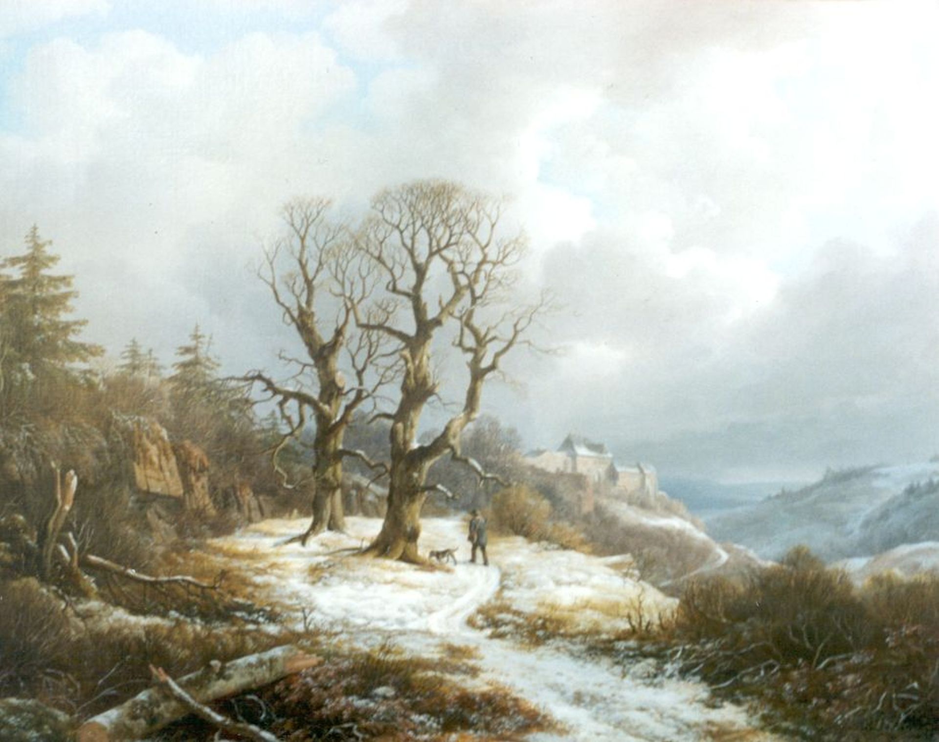 Remigius Adrianus Haanen kunstwerk • schilderij • voorheen te koop Jager in winterlandschap