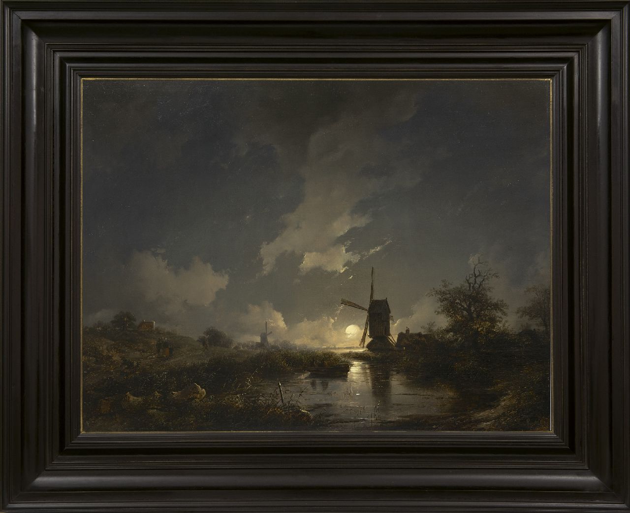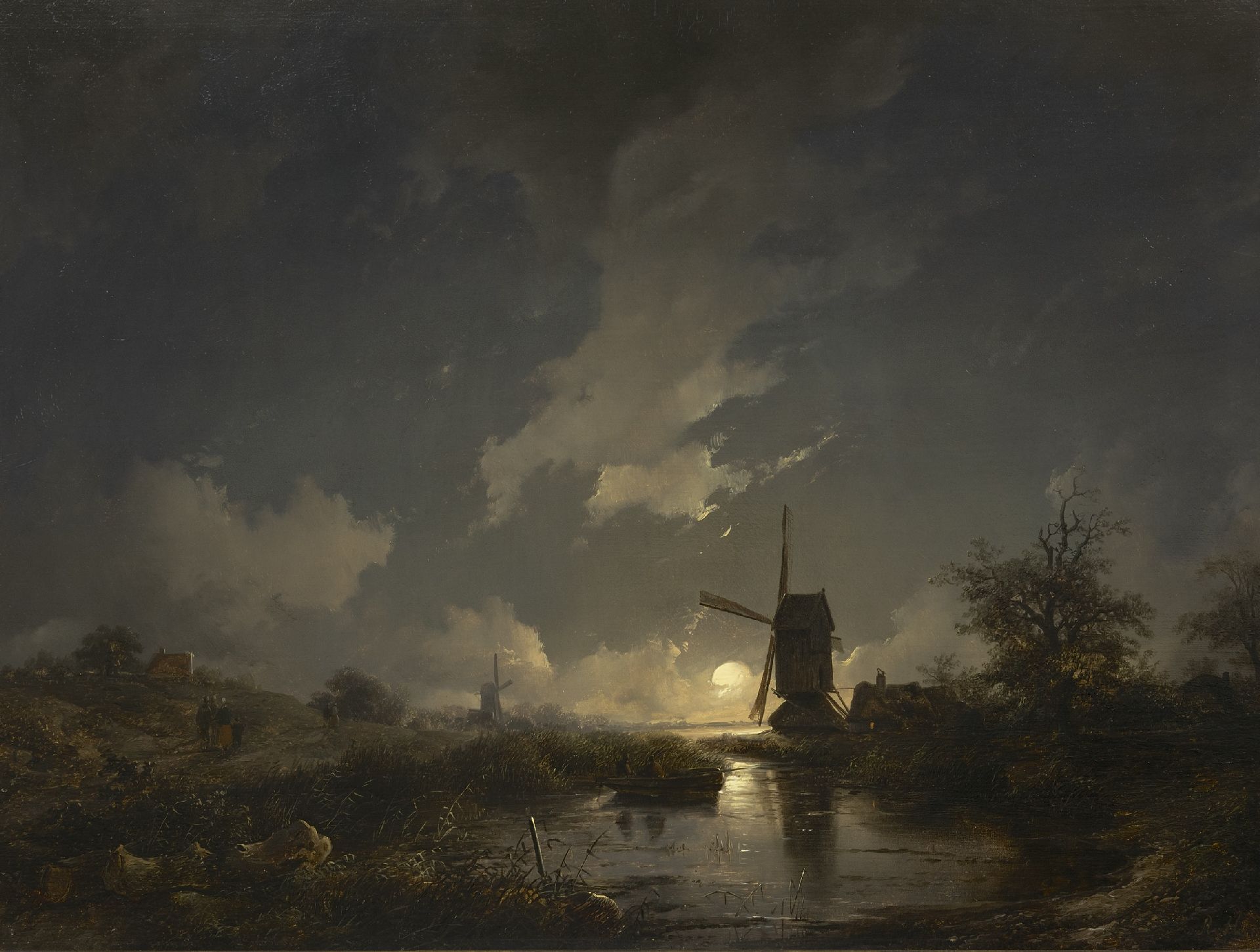 Remigius Adrianus Haanen kunstwerk • schilderij • voorheen te koop Maanverlicht polderlandschap met molens