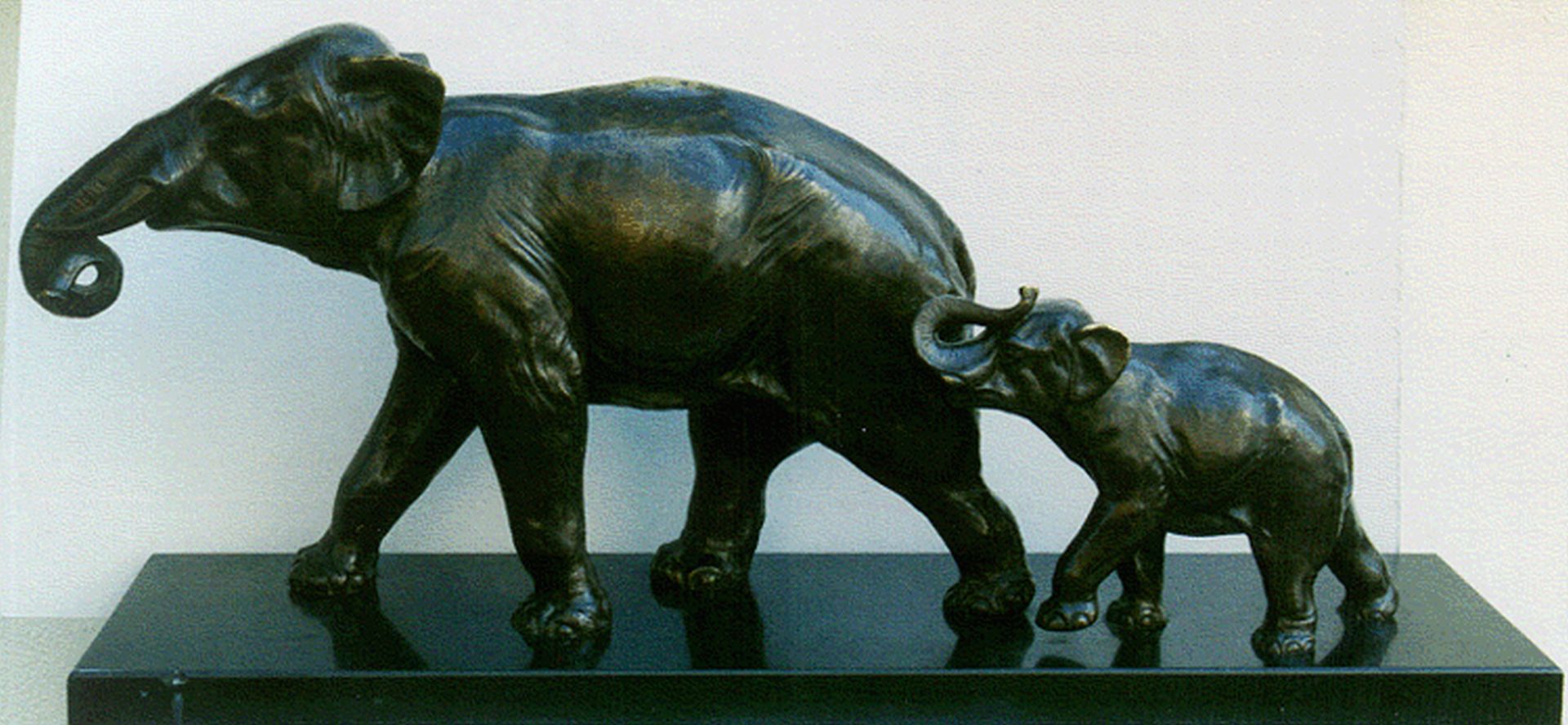 René Rochard kunstwerk • beeld • sculptuur • voorheen te koop Olifant met zijn jong