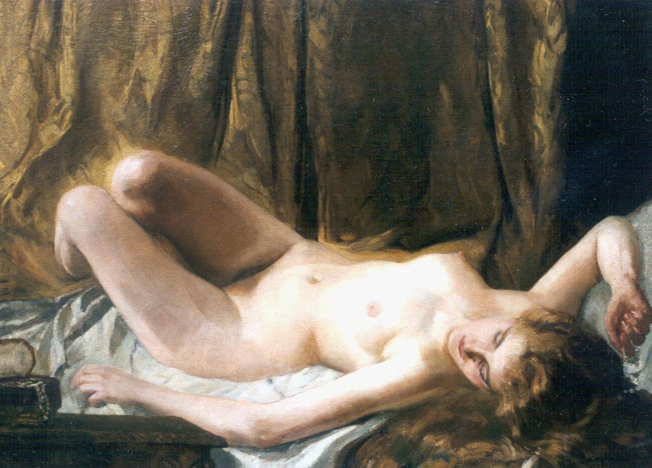 Rezso of Rodolphe Zsombolya-Burghart kunstwerk • schilderij • voorheen te koop Liggend naakt