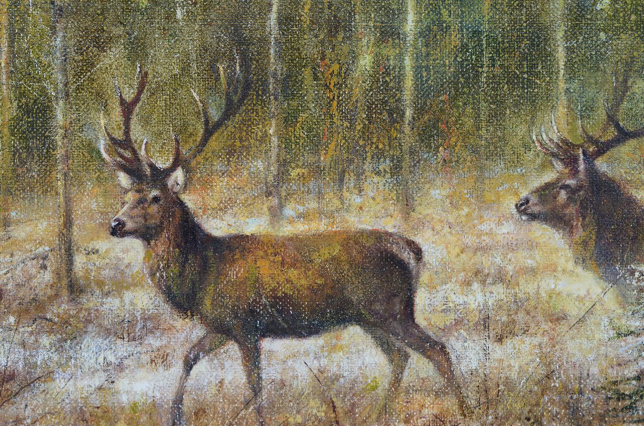 Rien Poortvliet kunstwerk • schilderij • voorheen te koop Herten in een besneeuwd boslandschap