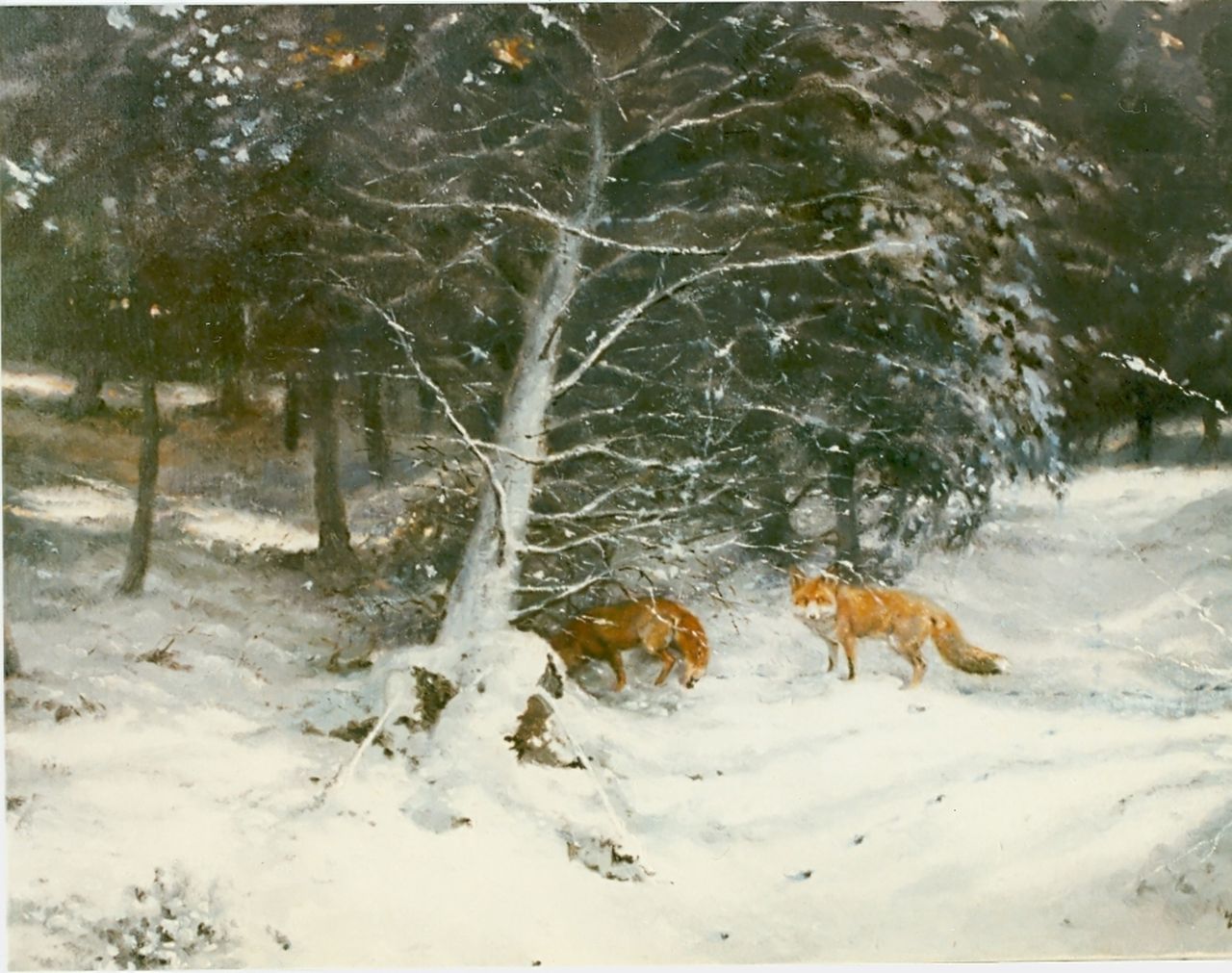 Rien Poortvliet kunstwerk • schilderij • voorheen te koop Vossen in de sneeuw
