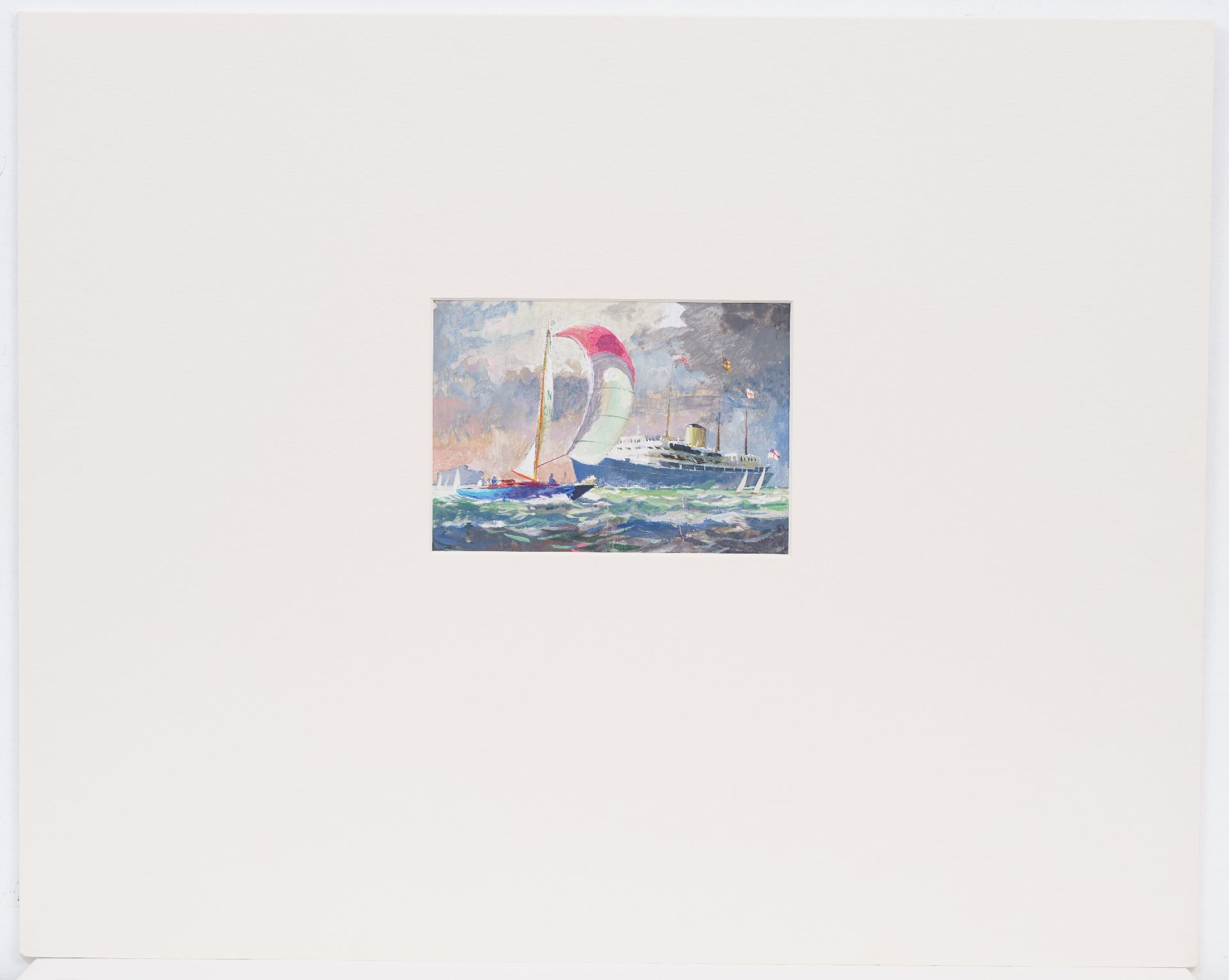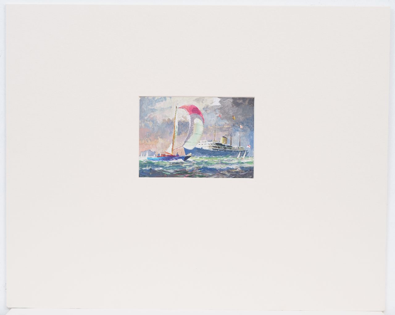 Back R.T.  | Robert Trenaman Back | Aquarellen en tekeningen te koop aangeboden | Zeilwedstrijd op zee, aquarel op papier 11,5 x 15,5 cm