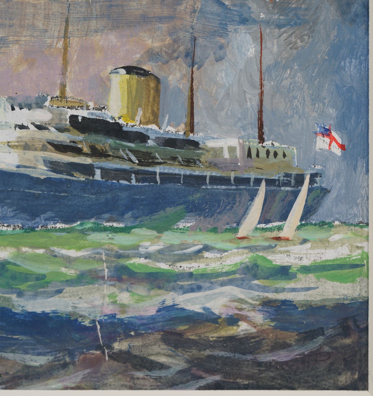Robert Trenaman Back | Passagiersschip en marineschip op zee, aquarel op papier, 22,0 x 33,8 cm, gesigneerd l.o. en gedateerd '45, zonder lijst