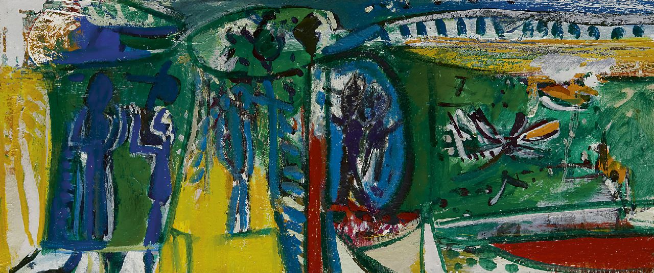 Roelof Frankot kunstwerk • schilderij • voorheen te koop Figuren in een tuin