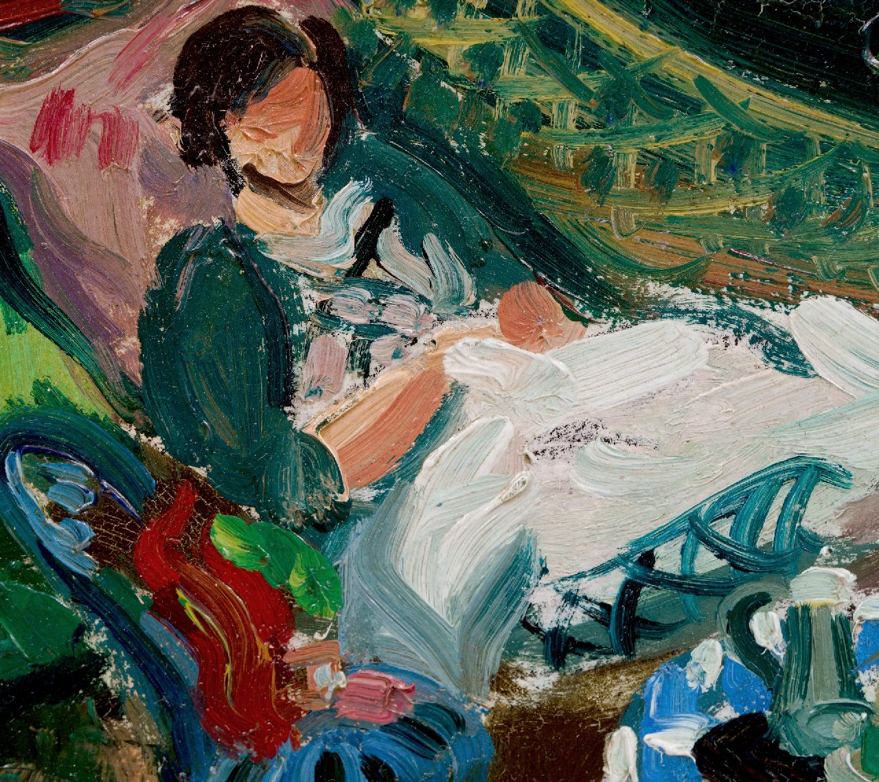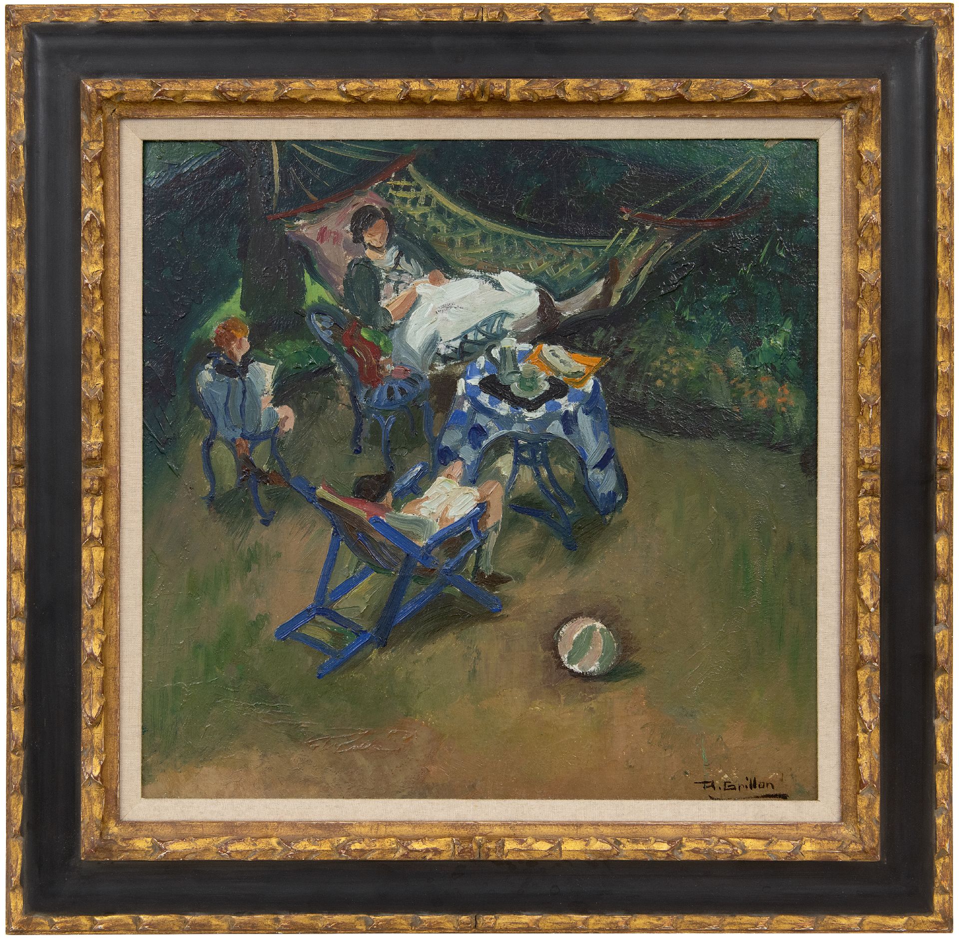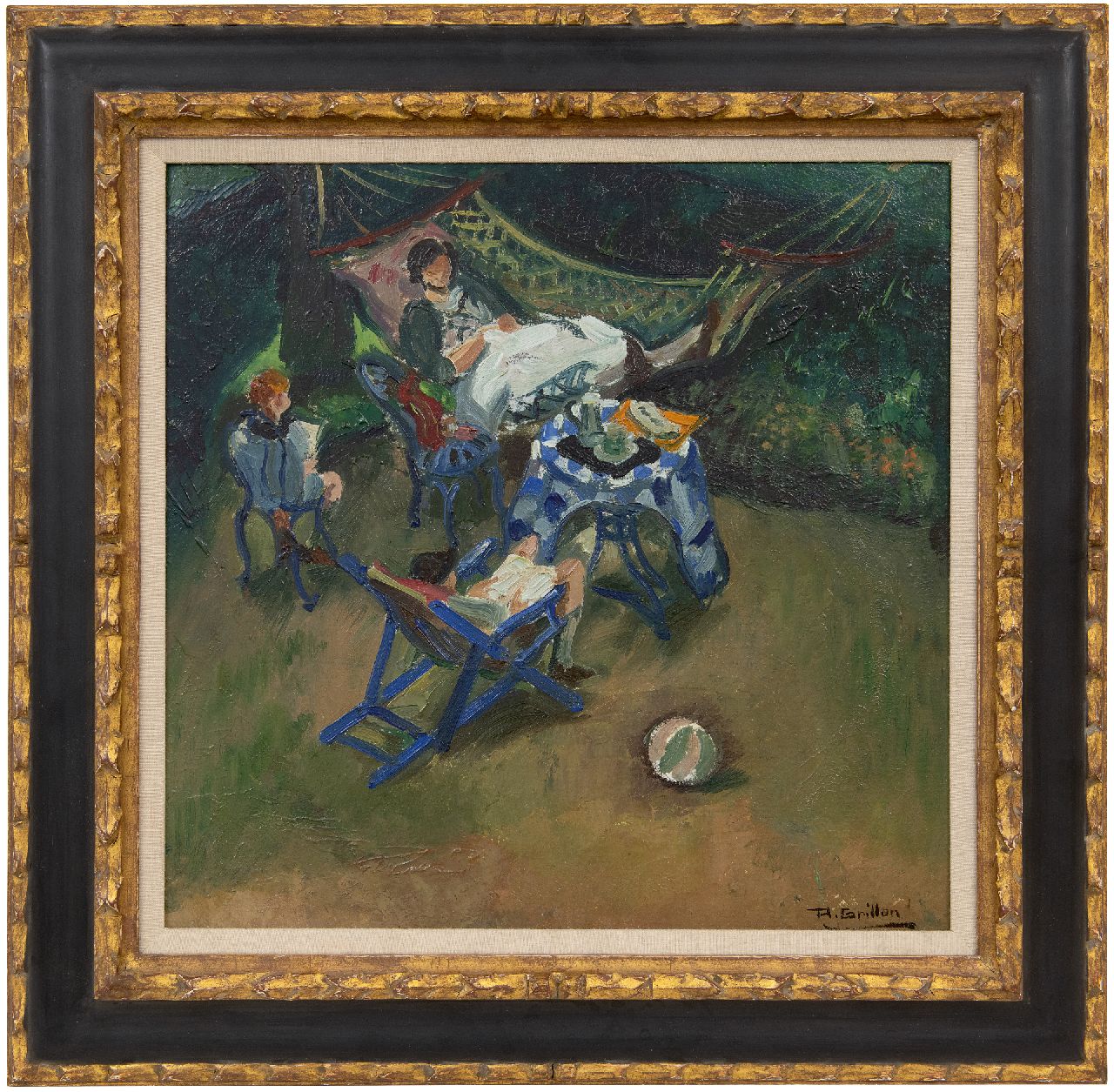 Roger Maurice Grillon kunstwerk • schilderij • te koop Het gezin van de schilder in de tuin