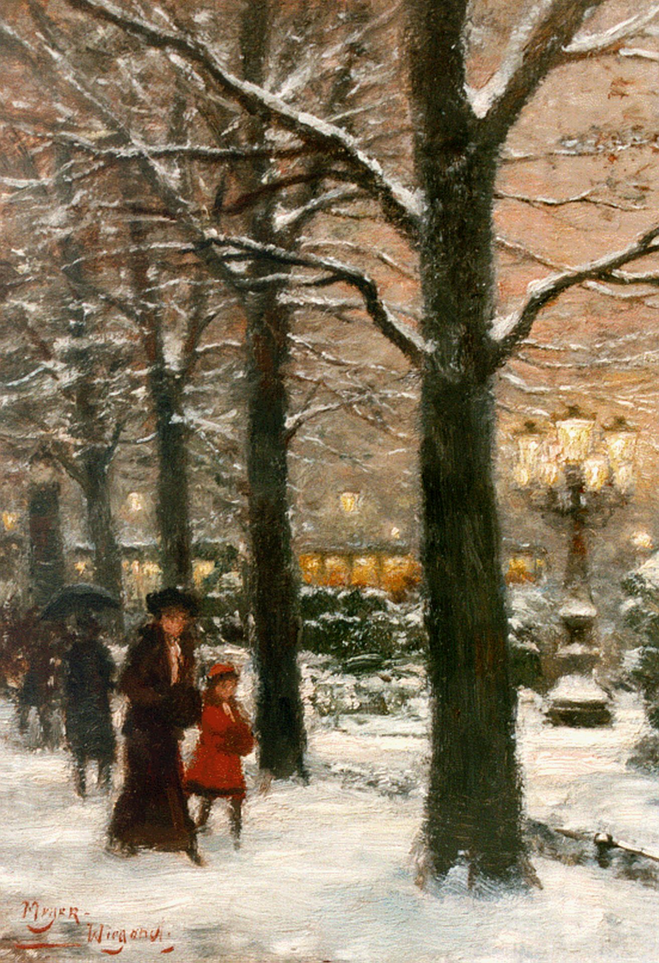 Rolf Dieter Meyer-Wiegand kunstwerk • schilderij • voorheen te koop Corneliusplatz in de winter (Düsseldorf)