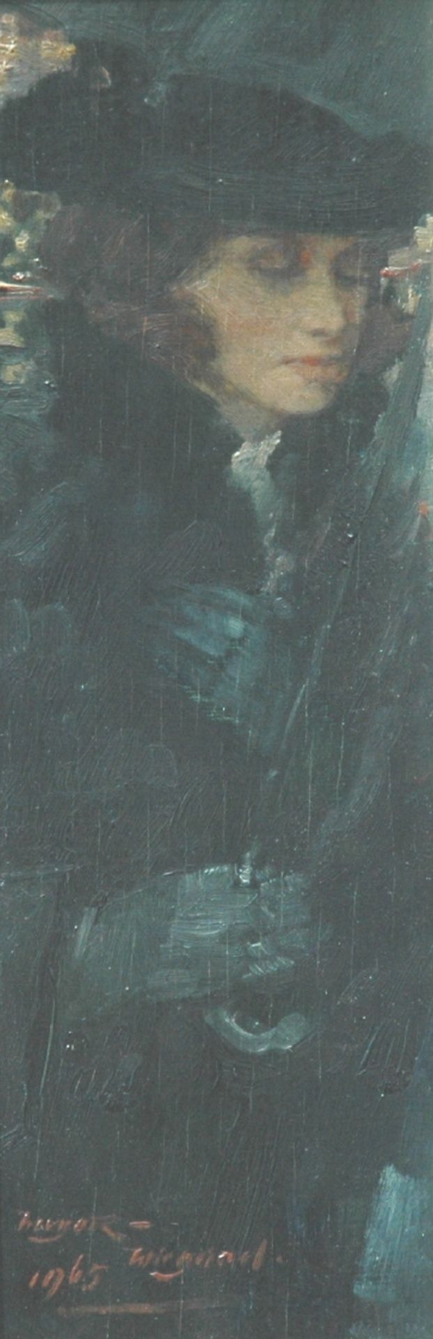 Rolf Dieter Meyer-Wiegand kunstwerk • schilderij • voorheen te koop Dame met paraplu