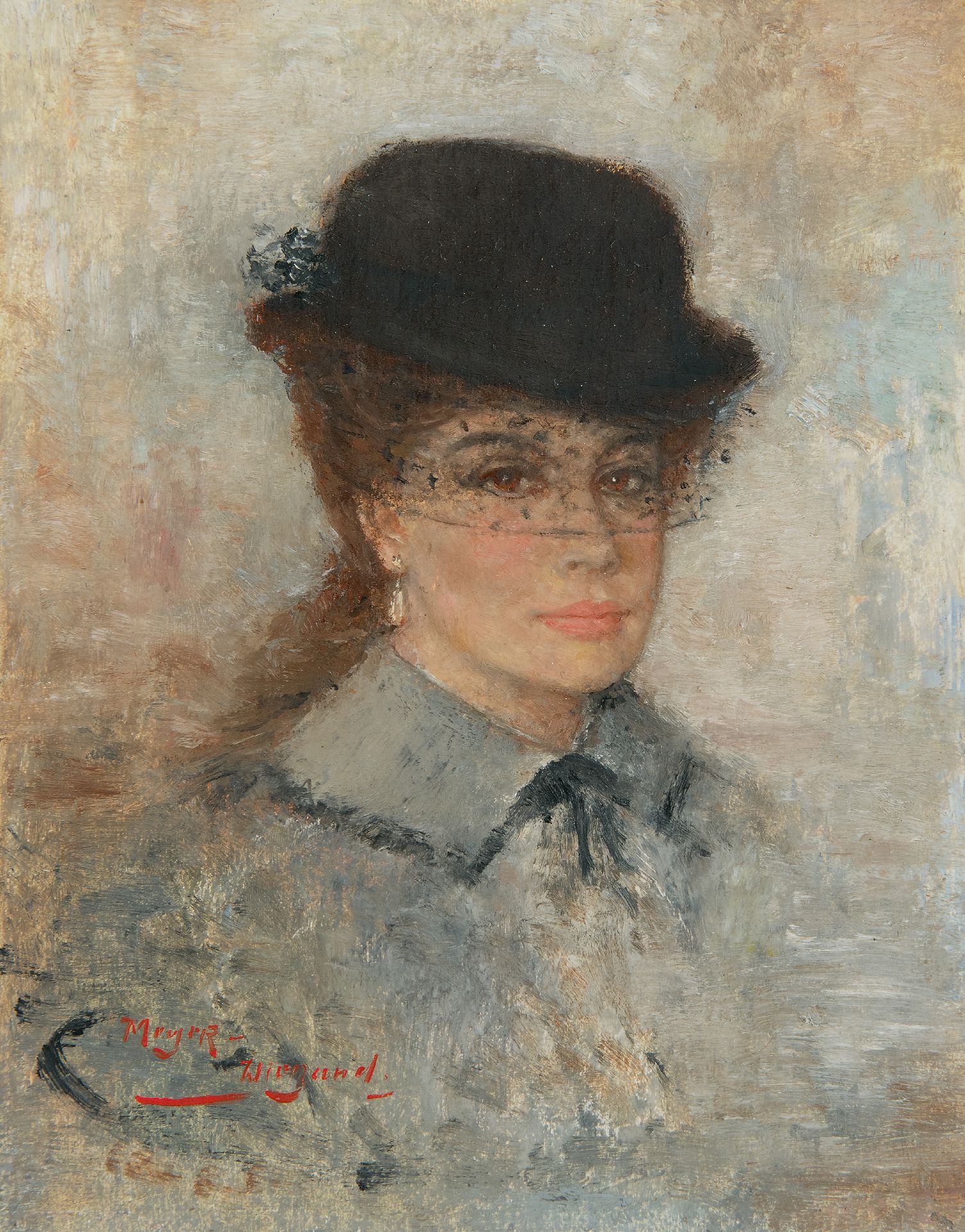 Rolf Dieter Meyer-Wiegand kunstwerk • schilderij • voorheen te koop Vrouw met hoedje met voile