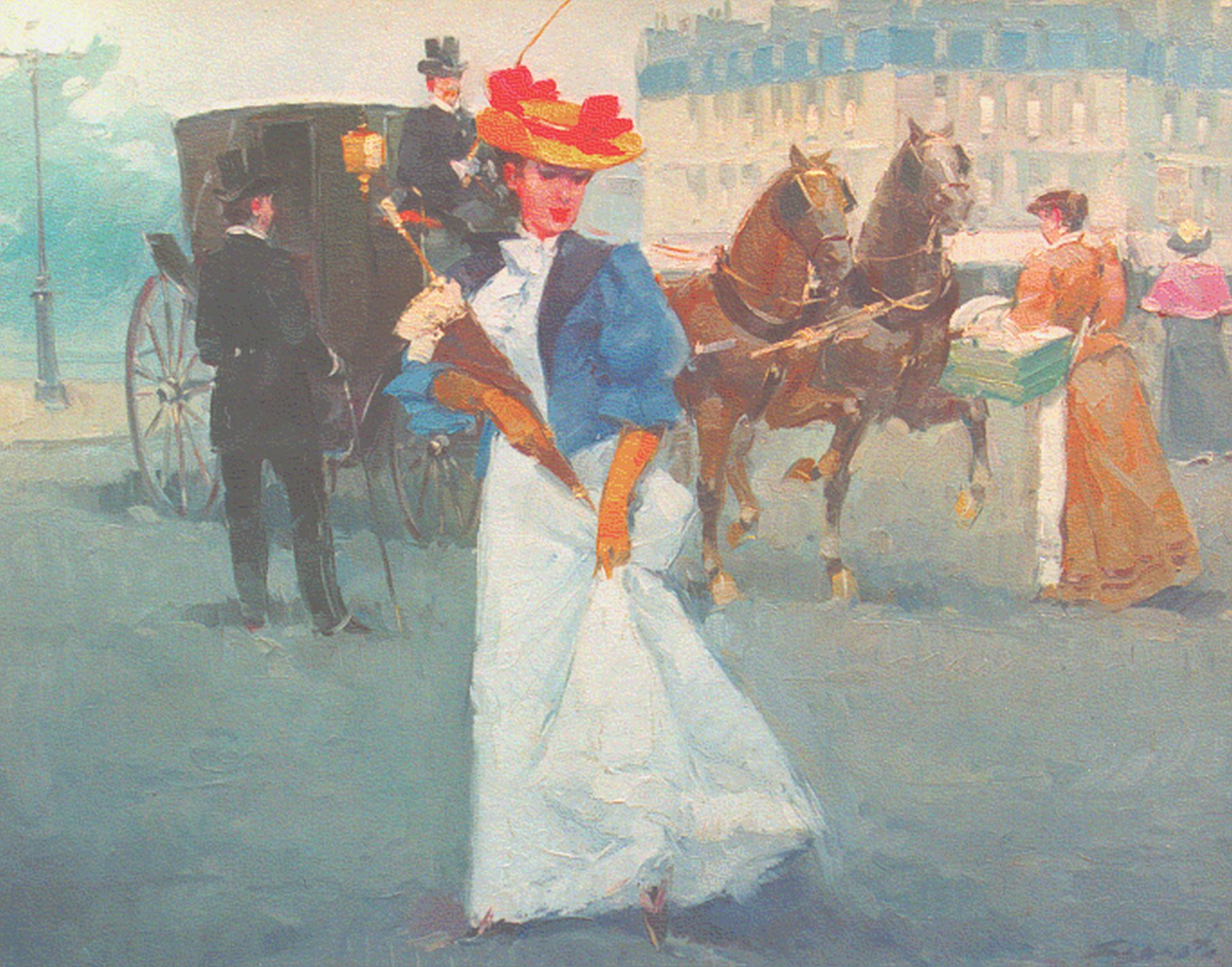 Sagasta kunstwerk • schilderij • voorheen te koop Elegante dame en koets in de stad