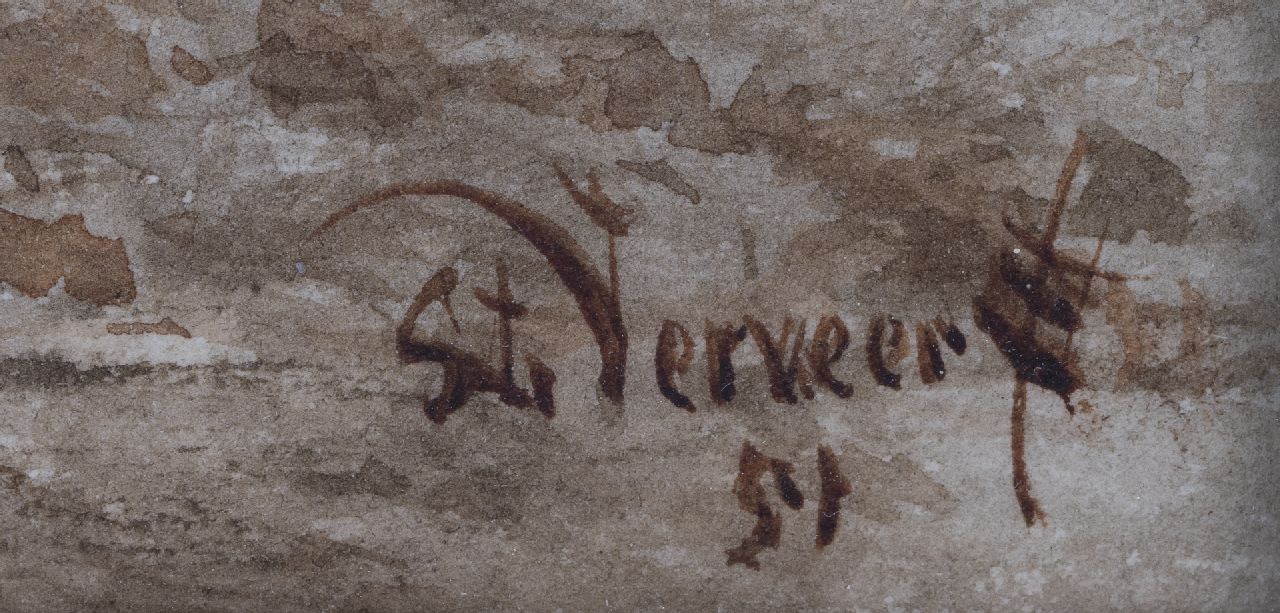Salomon Verveer woonde en werkte in Den Haag en was, als gewaardeerd lid van Pulchri Studio, een van de centrale figuren van het Haagse kunstleven. Zowel Willem II als Willem III kochten tekeningen en schilderijen van hem. Verveers oeuvre omvat rond 1840 vooral waterrijke stads- en dorpsgezichten, die in hun romantische sfeer en helder coloriet invloed verraden van zijn jong overleden vriend W.J.J. Nuijen. Daarna schilderde hij met een natuurlijker lichtval en zonder romantische motieven als ruïnes en spiegelende rivieren. Vooral door de levendige stoffage waren zijn schilderijen bij tijdgenoten zeer geliefd. Daarom stoffeerde hij ook regelmatig de stads- of zeegezichten van zijn Haagse en Amsterdamse schildervrienden. Zijn belangrijkste leerling was Jan Weissenbruch.