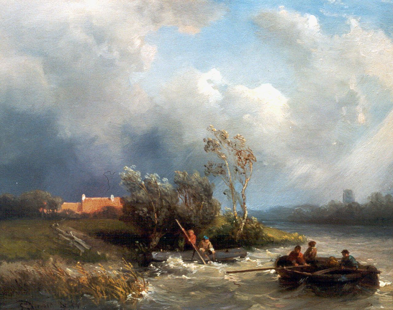 Salomon Verveer kunstwerk • schilderij • voorheen te koop Vissers in een roeiboot op een woelige rivier